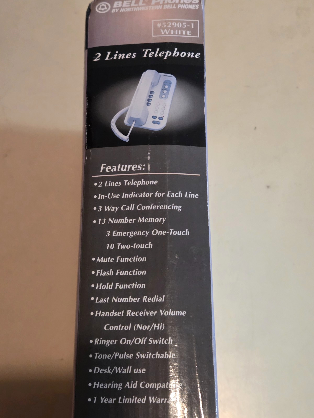 Vintage Northwestern Bell 2 Lines Phone 52905-1 White Box