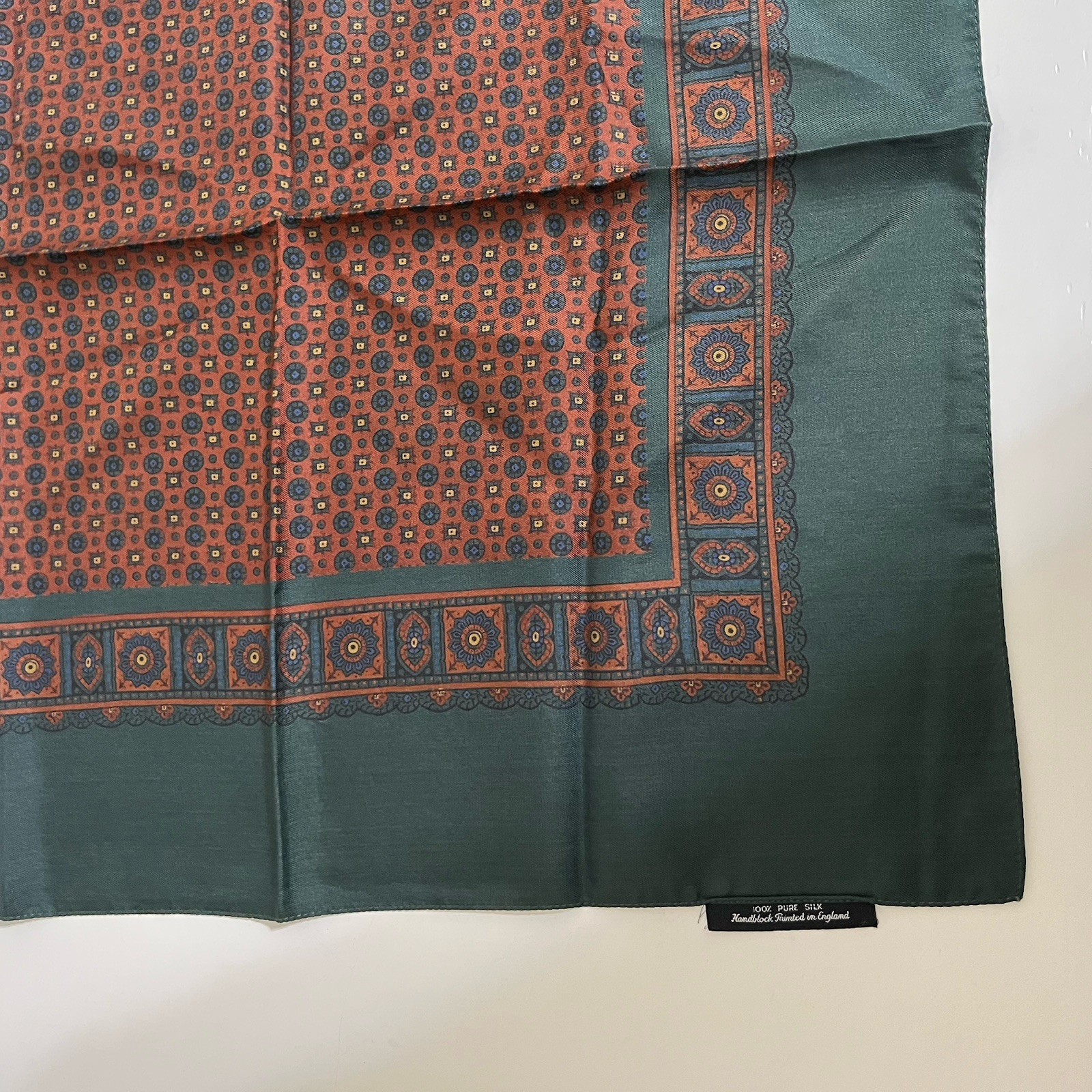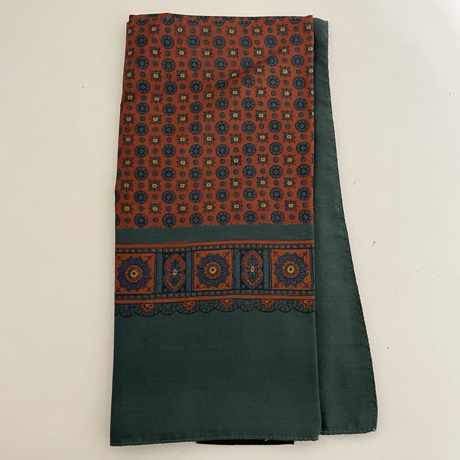Brooks Brothers Silk Handblock Painted Pocket Square Mini Scarf Made in England