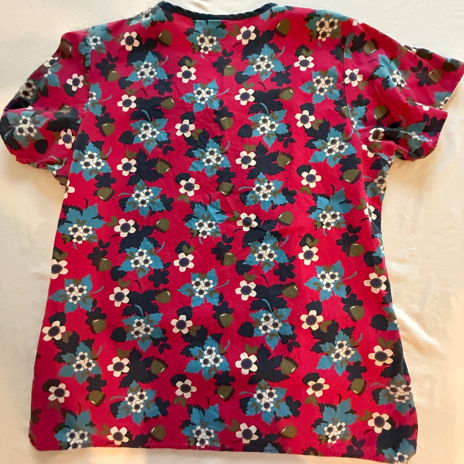 как выглядит Dickies Uniform Scrub Top Dark Pink w/Flowers Preowned Condition X-9 фото