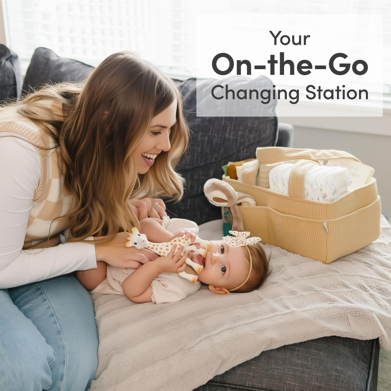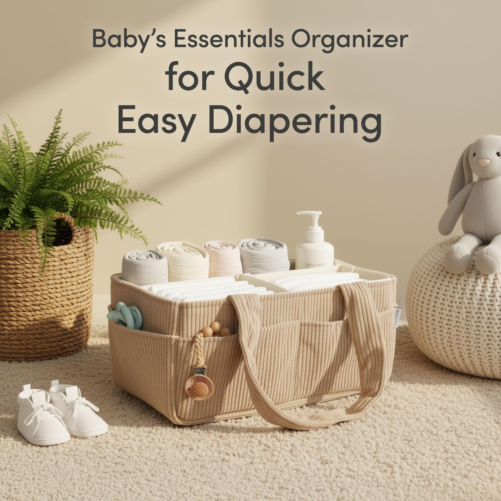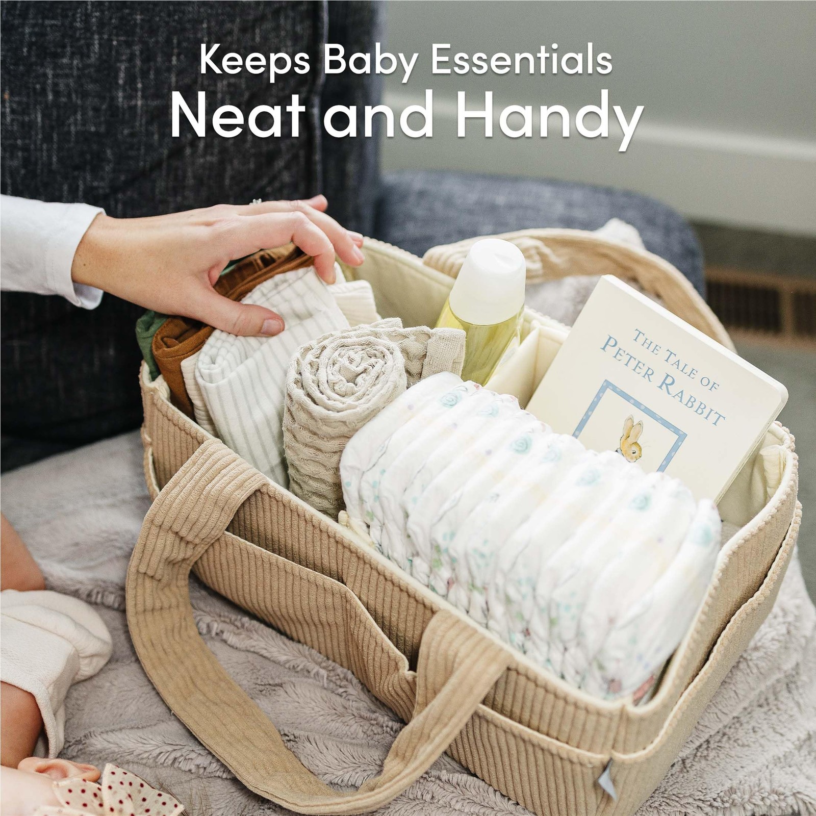 Baby Diaper Caddy Organizer for Changing Table Stylish Nursery Storage Bask...