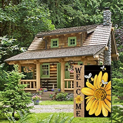 Spring Summer Bee Sunflower Garden Flag 12x18 Inch Double Garden Size-12 x 18