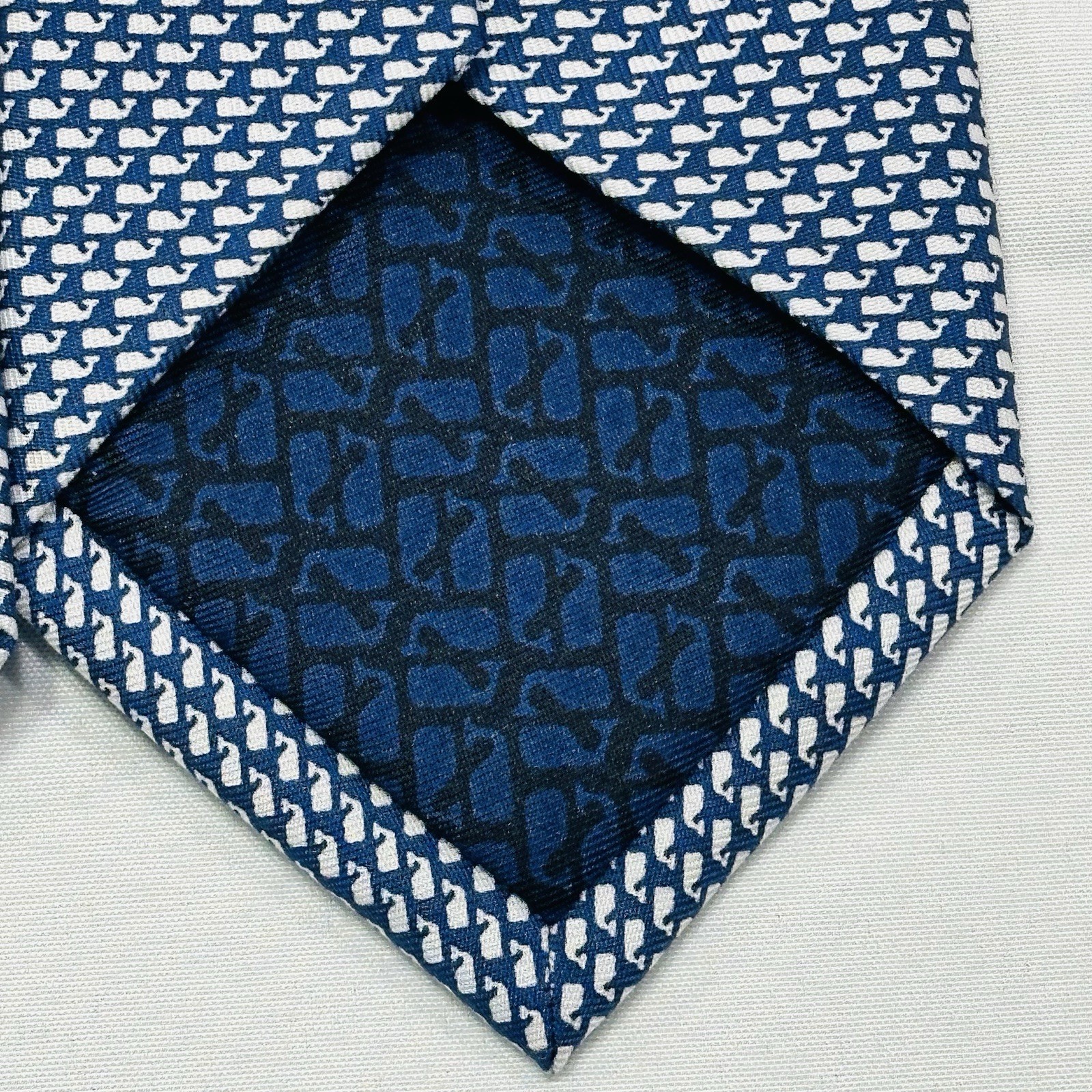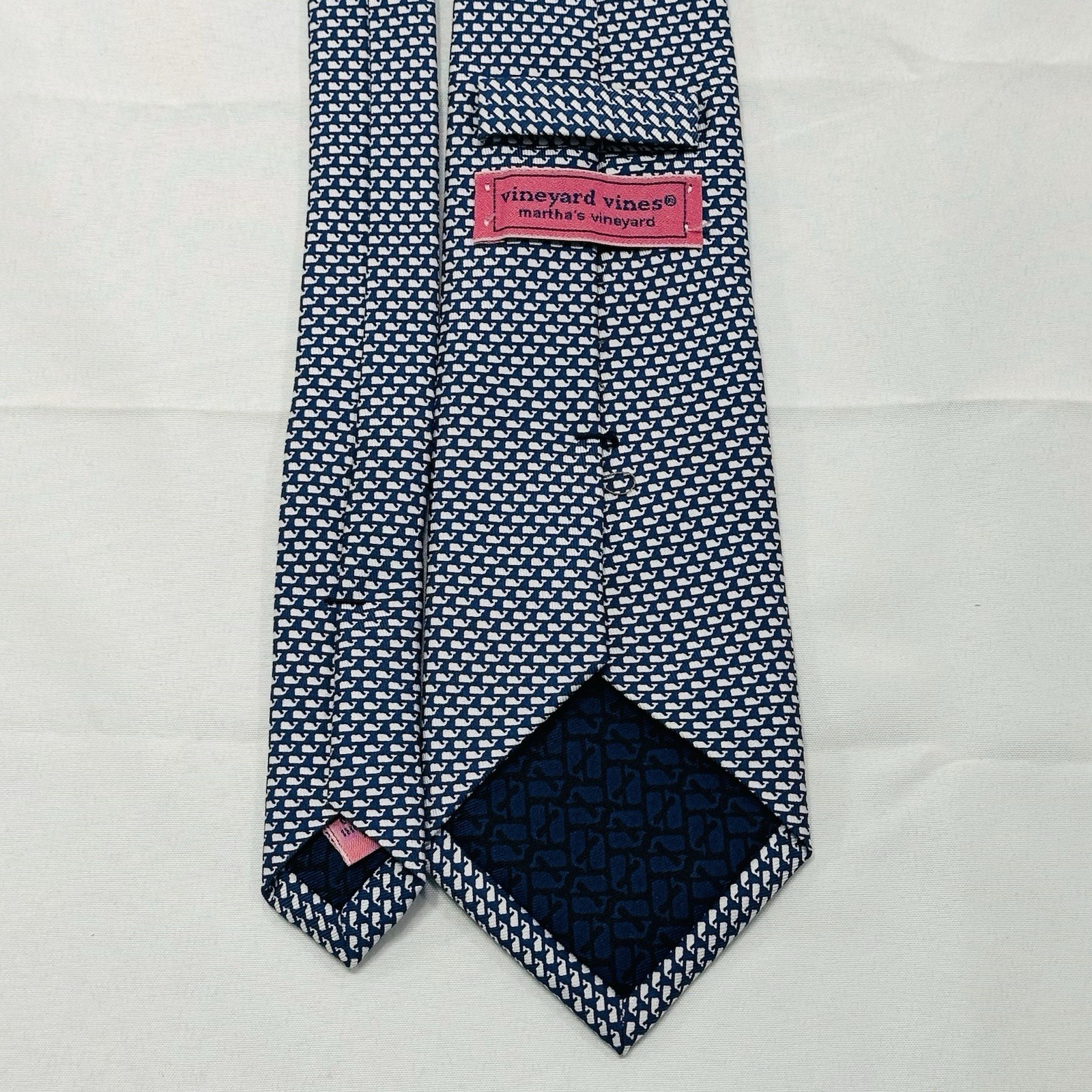 Vineyard Vines Men's Tie AOP Whale Logo Blue Silk USA 3.25 W x 48 L Youth