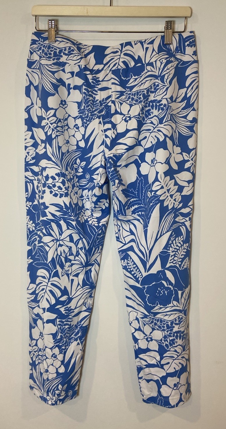 J.McLaughlin Pants Ankle Stretch Pull On Blue White Floral Medium M
