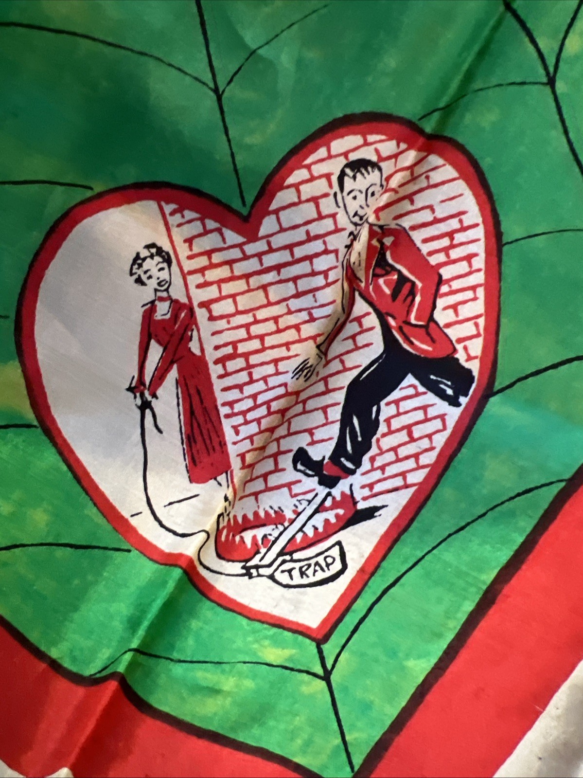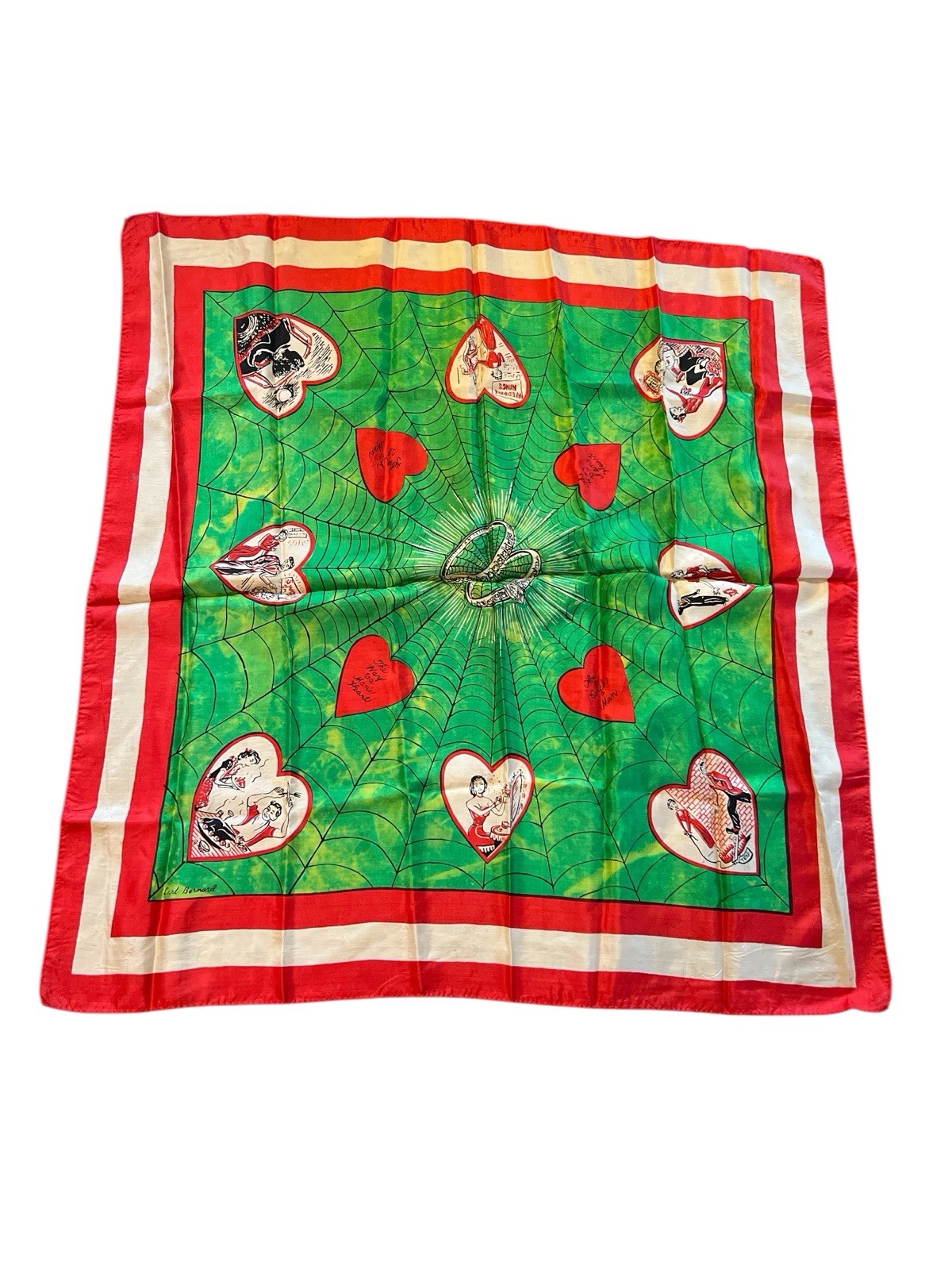 Vintage Delightful Love Theme Silk Scarf Earl Bernard Tagged