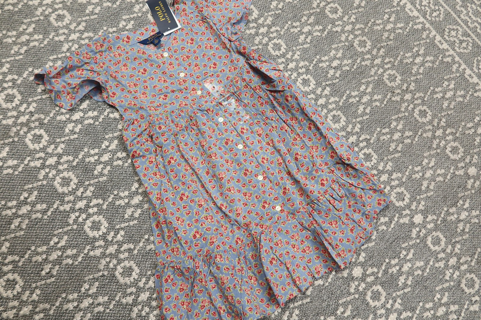 как выглядит New Polo Ralph Lauren Little Girls Floral Print Button-Front Dress - Size 6 фото