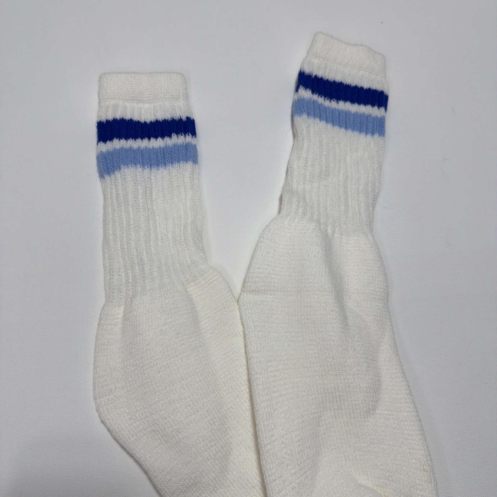 Vintage 90's Socks 9-11 Crew Blue Stripes NOS Acrylic White USA