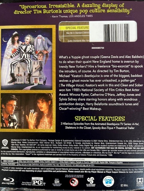 BEETLEJUICE-1988 Blu-Ray W/ Slipcover Features BEETLEJUICE-NECA FIGURE NEW