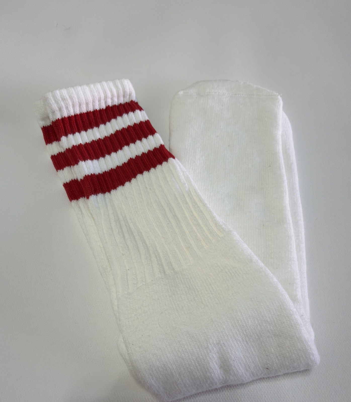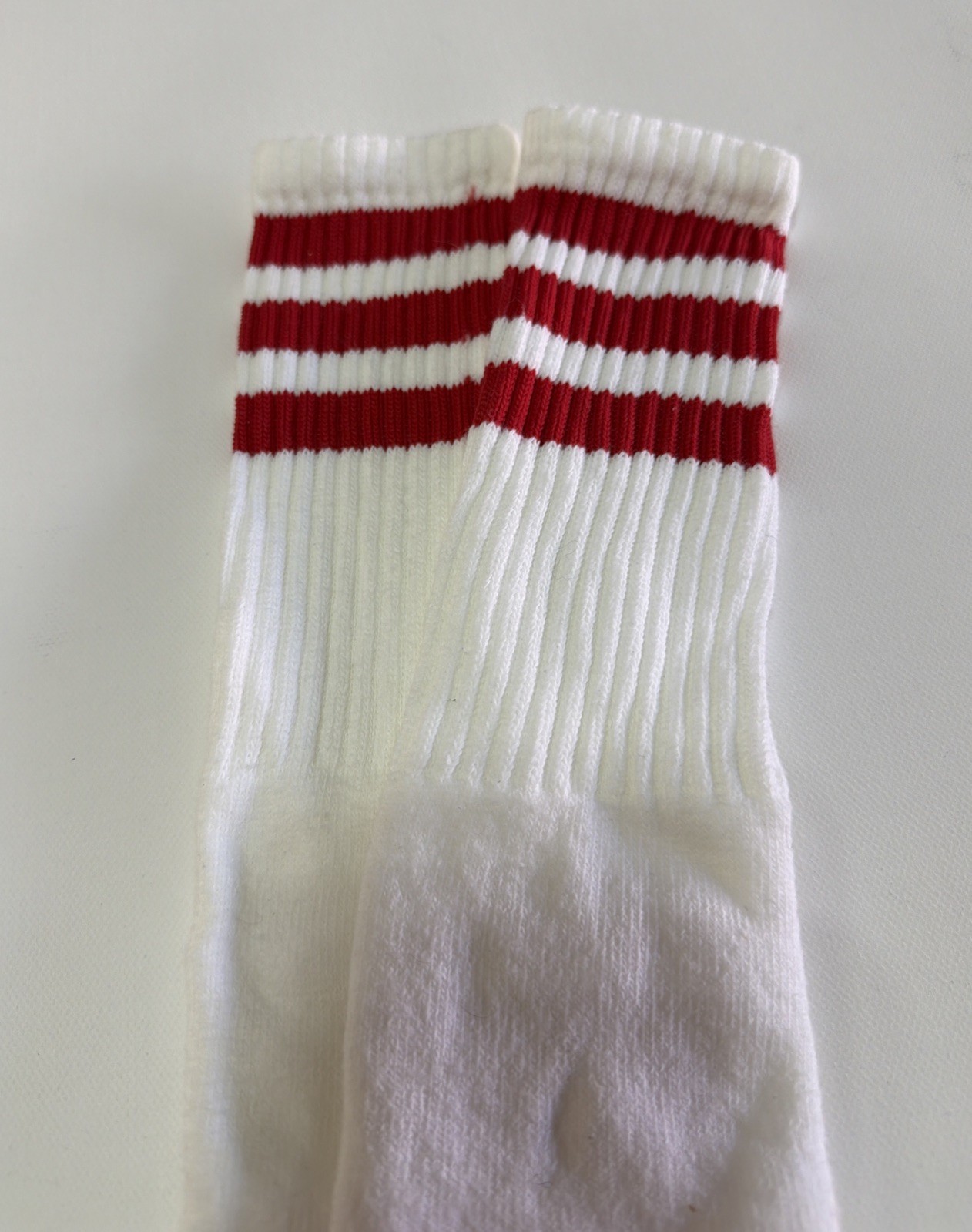 VTG Tube Socks 19 White Red 80's New Acrylic Blend Striped USA Made Super Soft