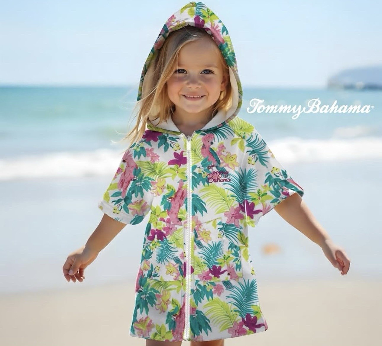 как выглядит Tommy Bahama Girls 4-5Y Tropical Zip-Up Hooded Cover Up And One Swimsuit Set NWT фото