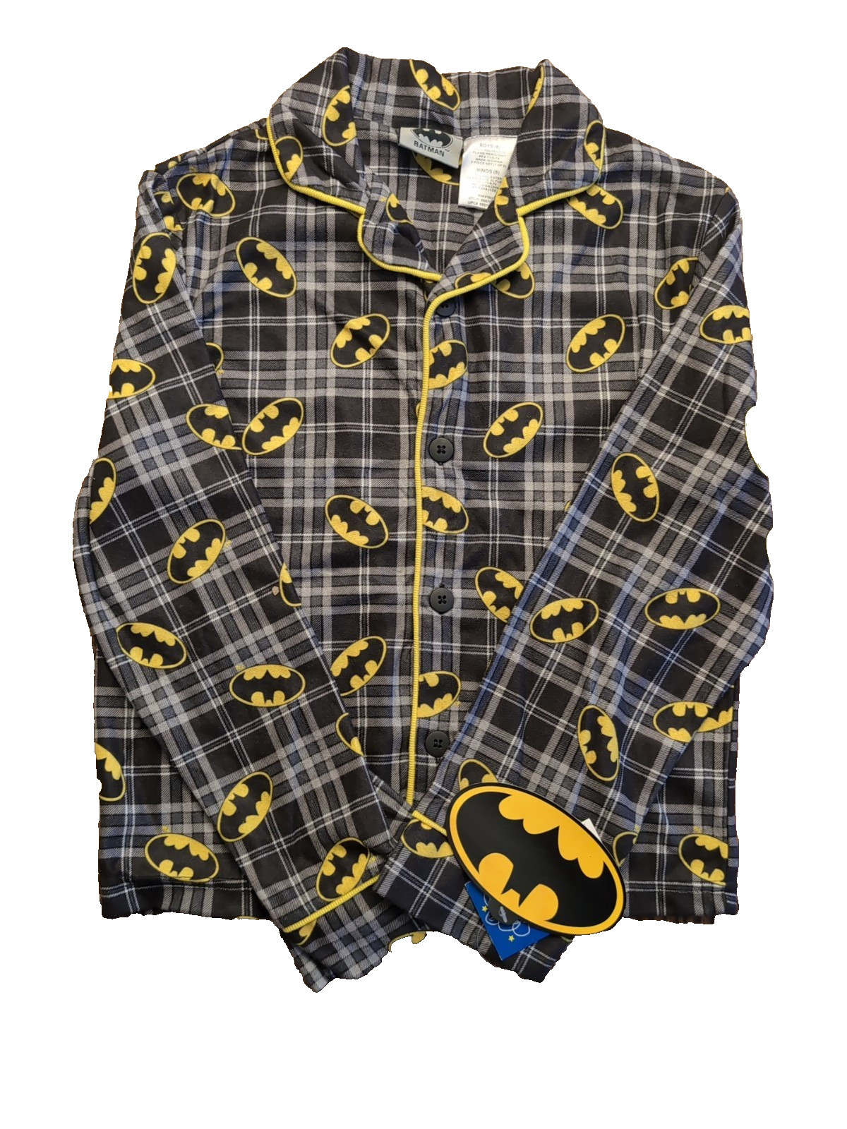 Batman Pajamas Set Boys Size 8 Two Piece Black Gray Yellow Top Pants New
