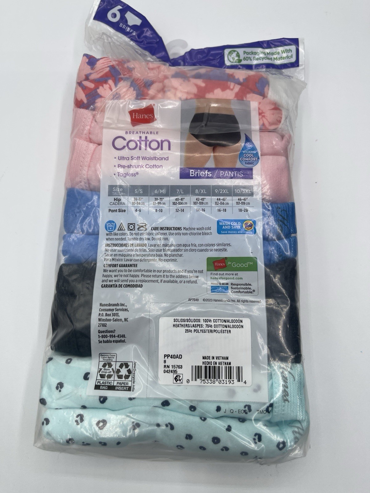 Hanes Underwear Womens 8 XL Briefs Breathable Cotton Tagless 5 Pairs