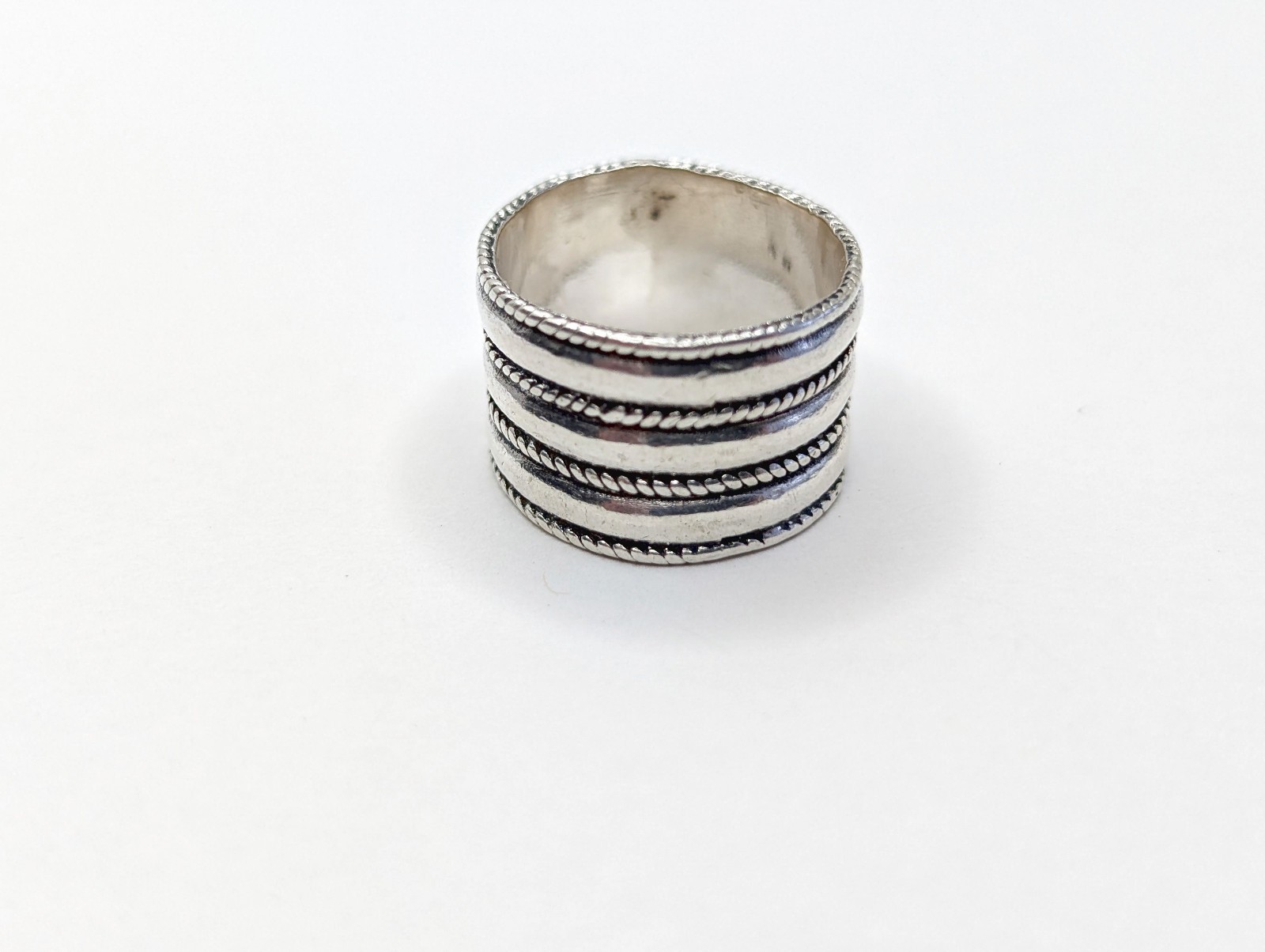 как выглядит Vintage Handmade Artisan Sterling Wide Ribbed Rope Borders Band Ring - Sz 6 - M фото