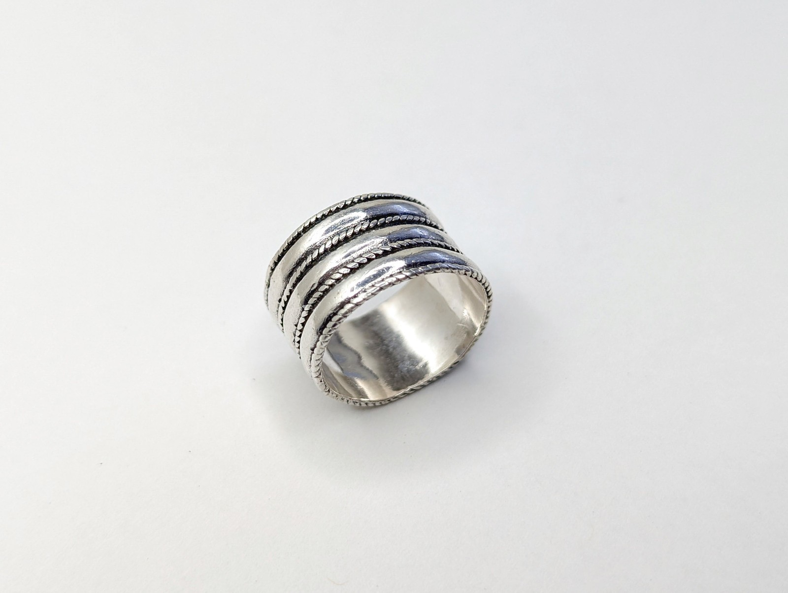 Vintage Handmade Artisan Sterling Wide Ribbed Rope Borders Band Ring - Sz 6 - M