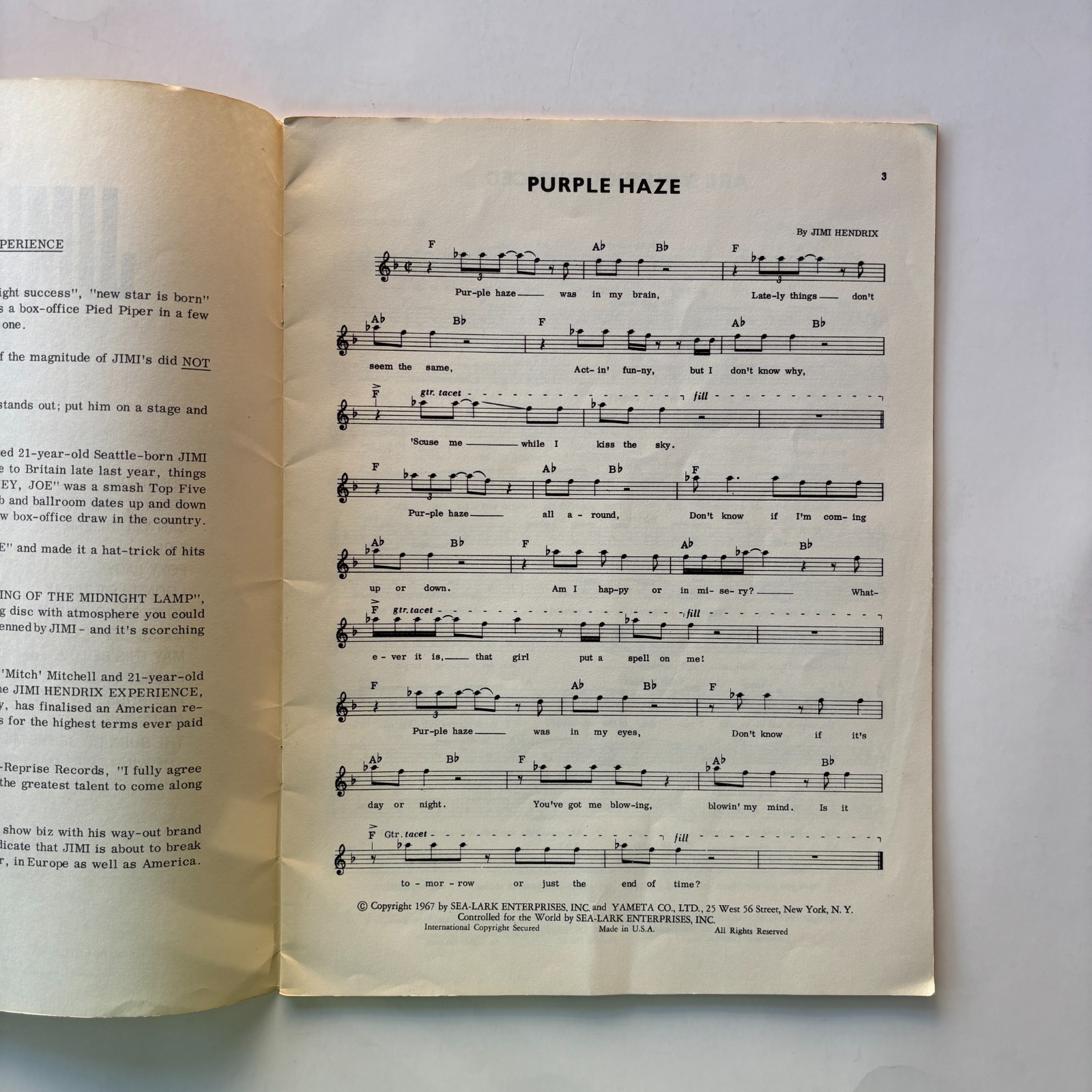 Jimi Hendrix Experience Album Guitar Music Song Book 1968 Sea-Lark Enterprises