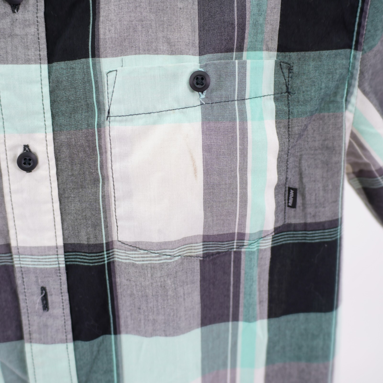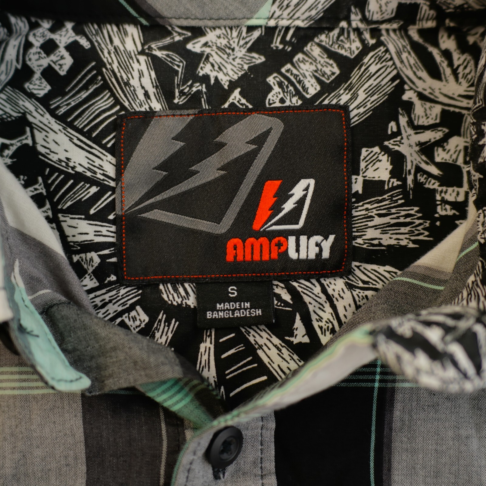 DAMAGED Amplify Black White Gray Plaid Small Button Front Dress Shirt Short Slee