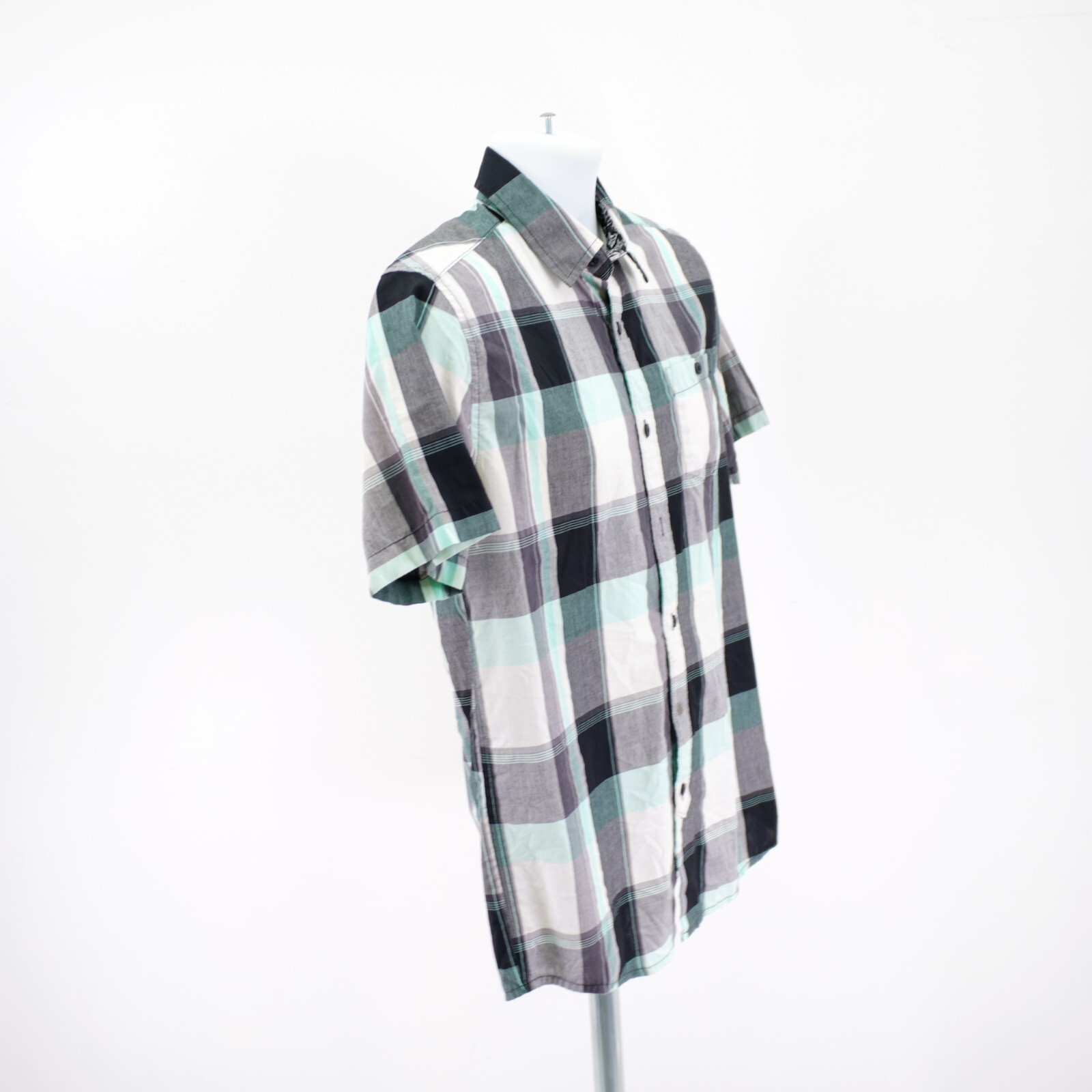 как выглядит DAMAGED Amplify Black White Gray Plaid Small Button Front Dress Shirt Short Slee фото