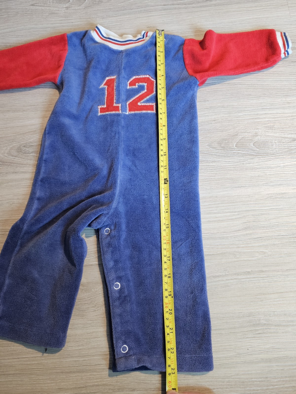 Vintage Healthtex 12 Boys 18mo Blue Velour Romper Outfit