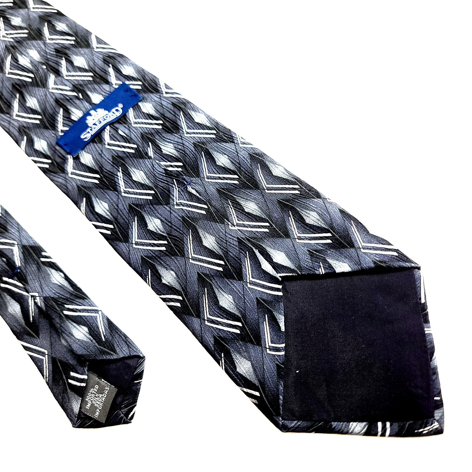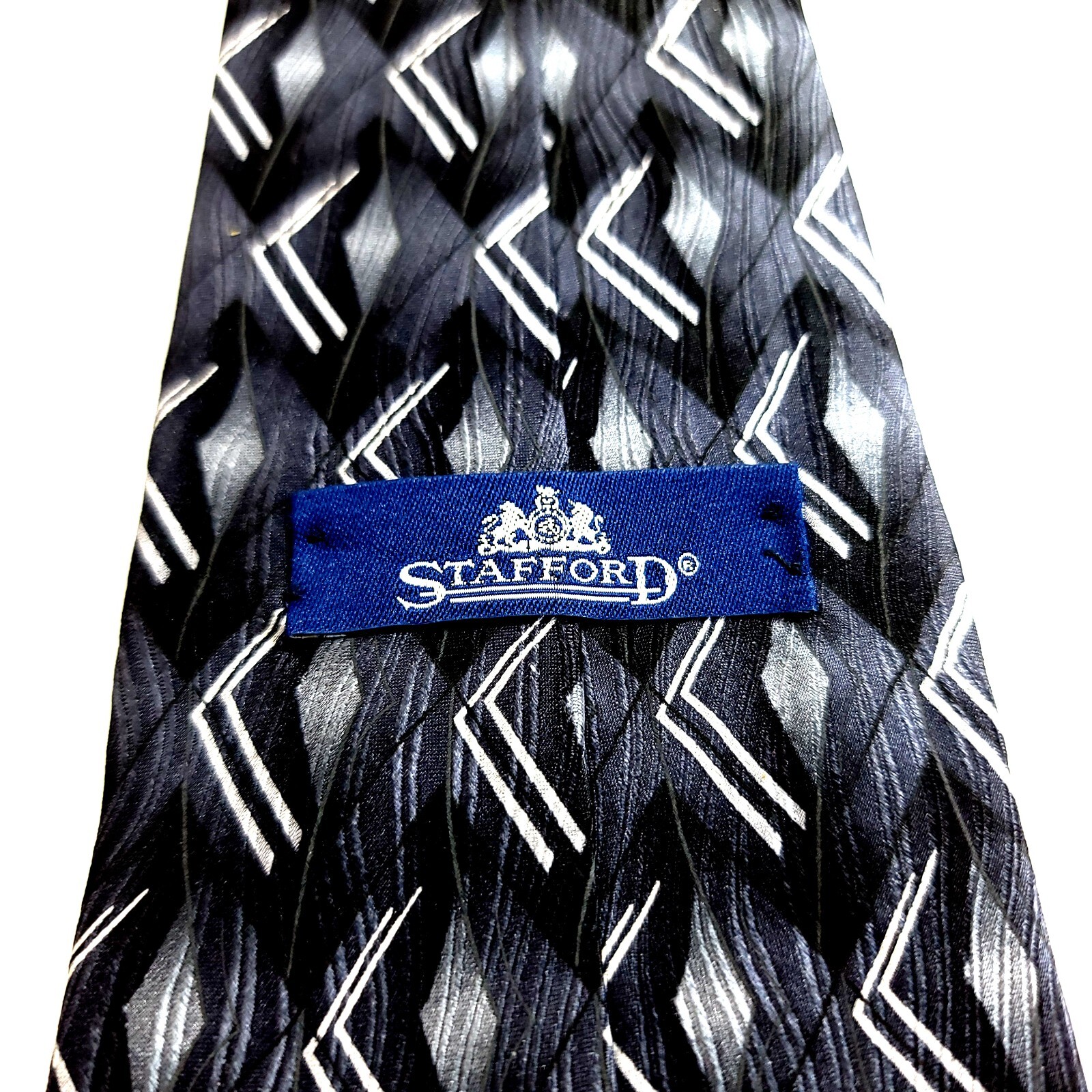 Stafford Gray Blue Abstract Jacquard Print Wide Silk Tie