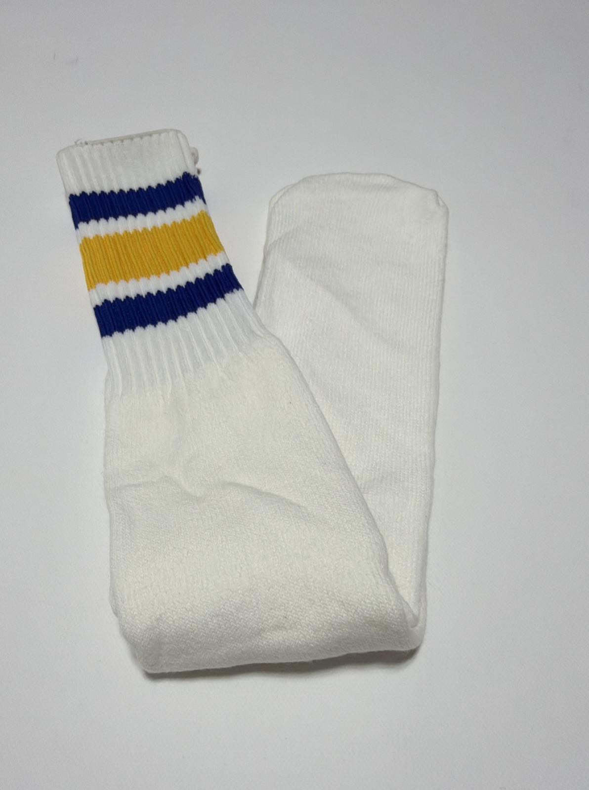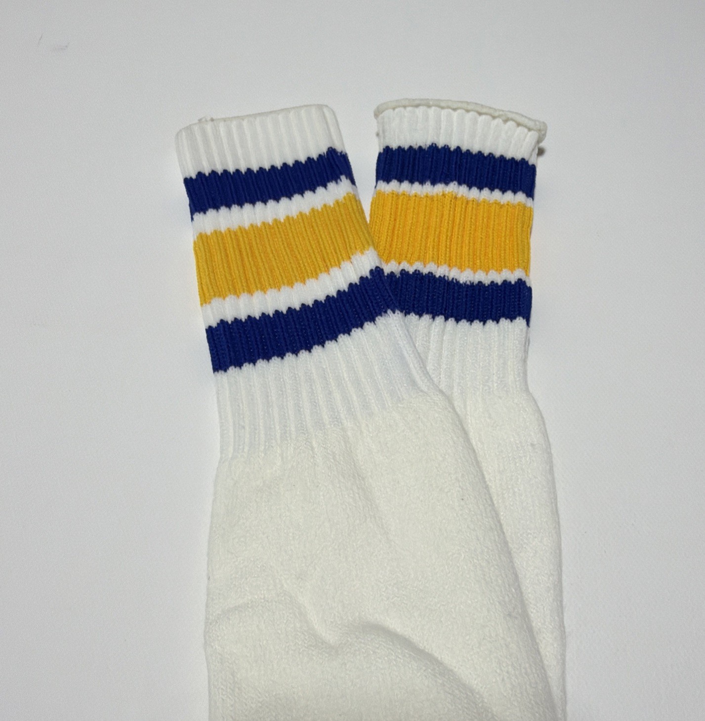 VTG Tube Socks 21 White Blue Gold 80's New Acrylic Blend Striped USA Made
