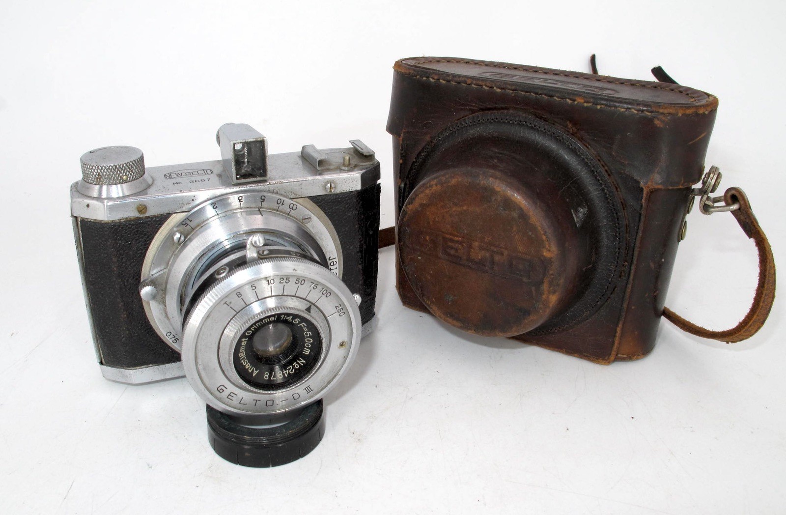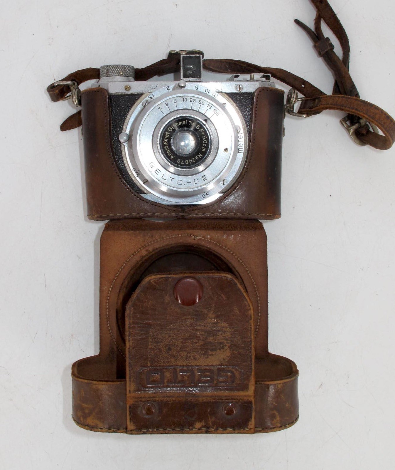 как выглядит VINTAGE BLACK GELTO D-III 127 CAMERA W/ CASE 50MM F/4.5 GRIMMEL LENS-WORKING фото