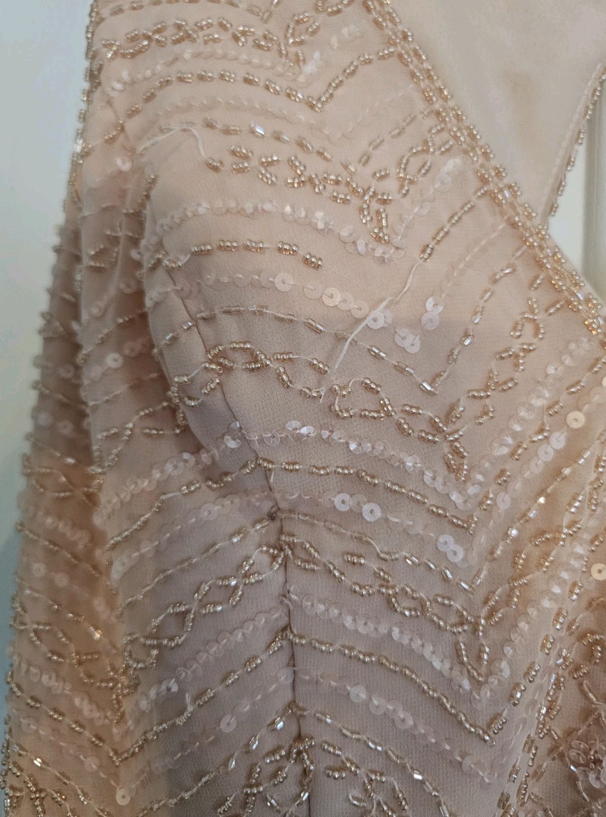 как выглядит Andrianna Papell Blush Size 12 Chiffon V-Neck Beaded Floor Length Formal Gown фото