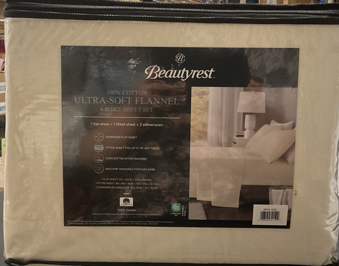 как выглядит Oversized Cotton Flannel 4-Piece Ivory Solid Queen Sheet Set фото