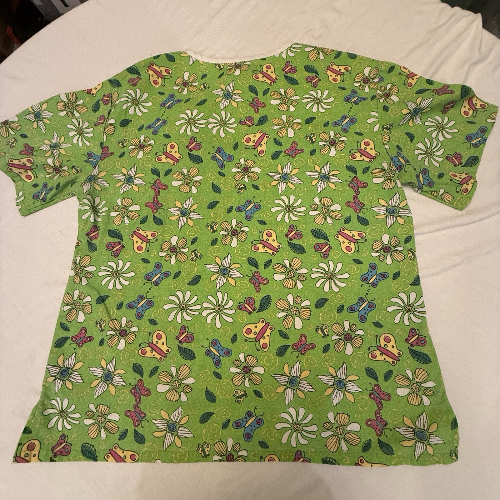 как выглядит Southern Scrubs Uniform Top Green w/Flowers Butterflies Medium Preowned X-47 фото