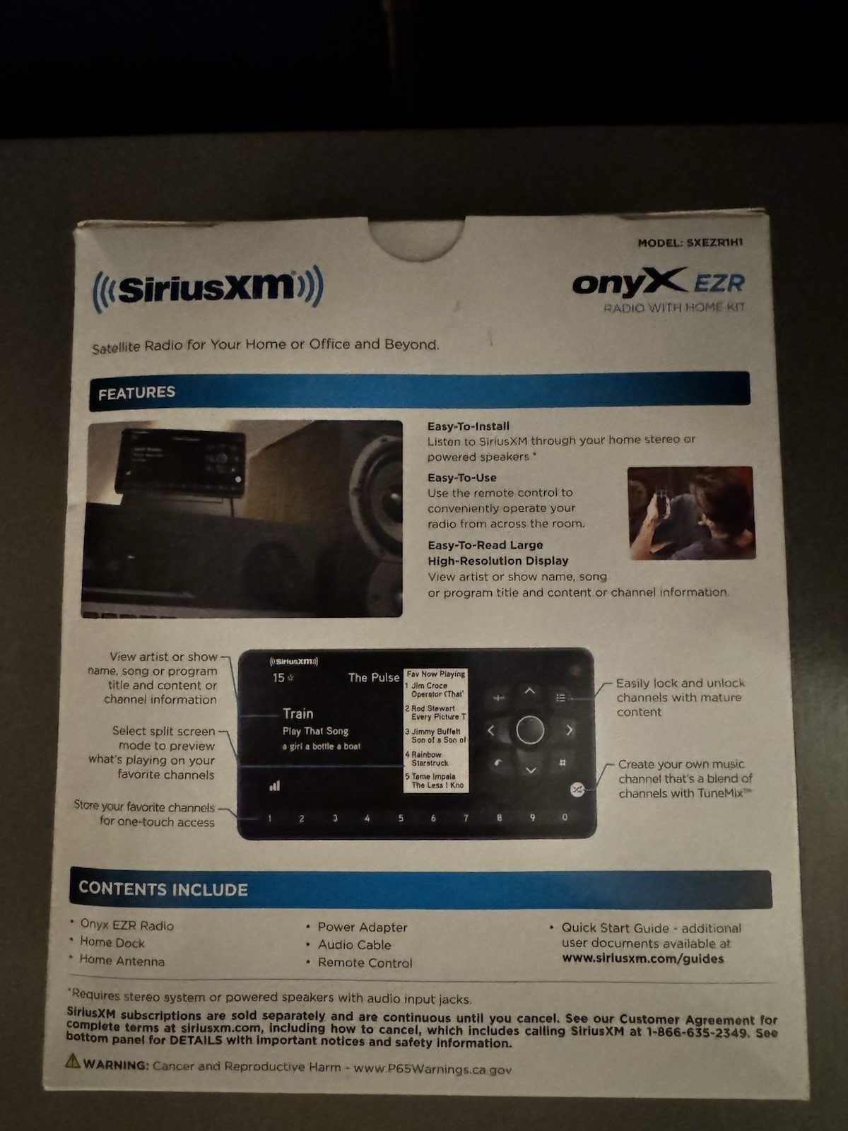 SiriusXM SXEZR1H1 Onyx EZR Satellite Radio with Home Kit - BRAND NEW Sealed