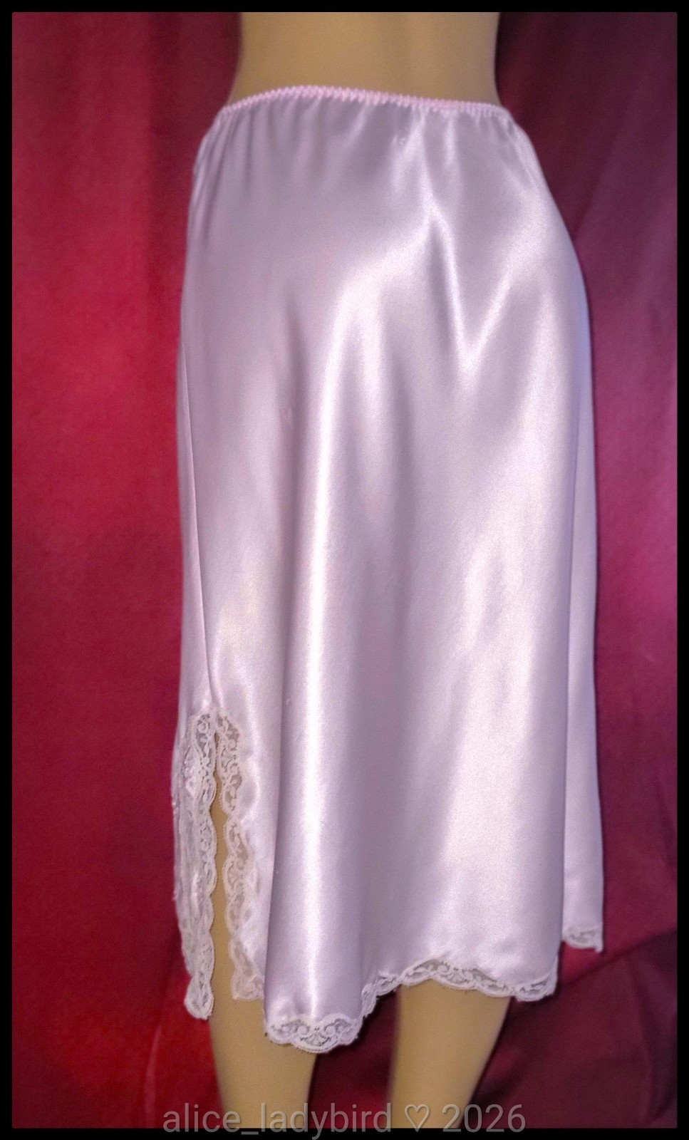 как выглядит Vintage SATIN Half SLIP Skirt SILKY Smooth Pink Floral Lace M/L фото