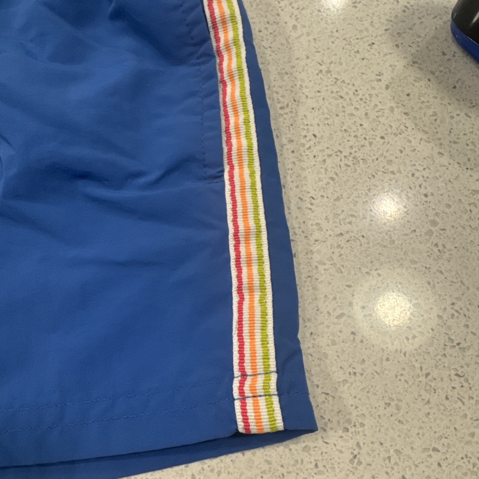 как выглядит Art Class Youth Boys XS Swim Trunks Blue Striped Sides Built-in Mesh Shorts фото