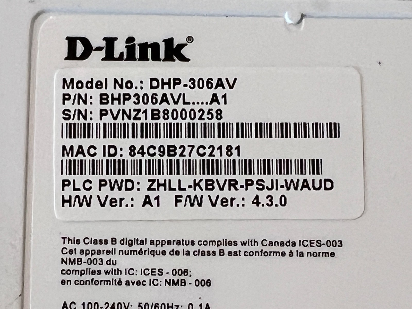 MPN: DHP-306AV, BHP306AVL