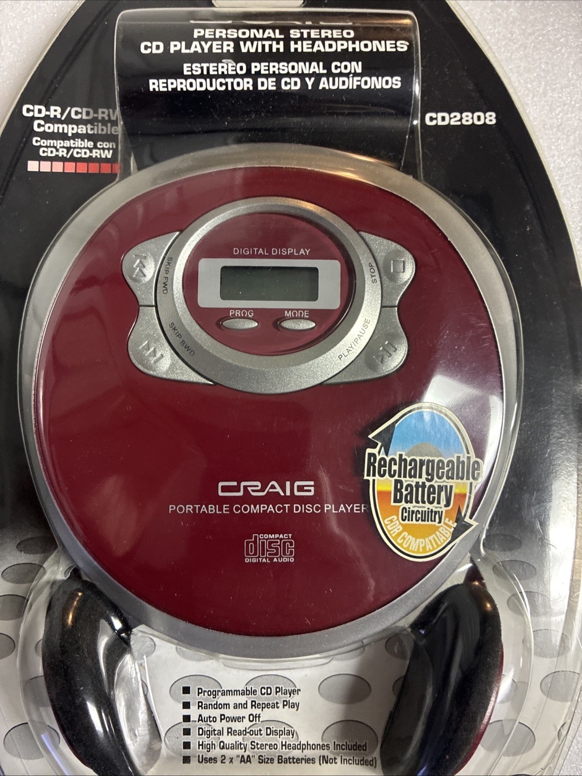 Craig CD2808 Personal Compact Disc Portable CD Player - Red/Silver