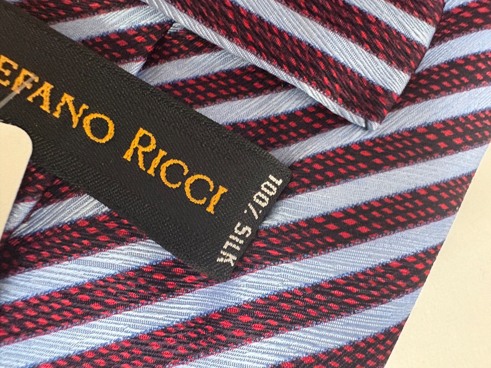 STEFANO RICCI Tie 100 Silk Made in Italy NWT BLUE/RED