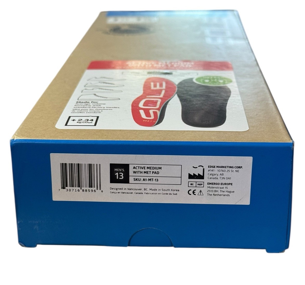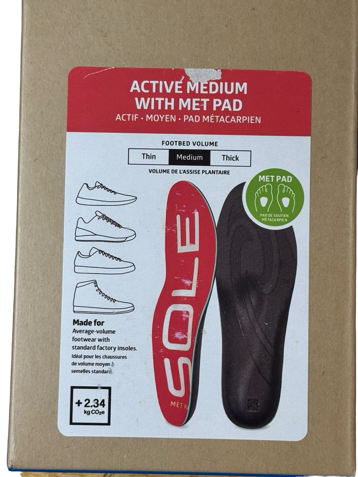 SOLE Active Medium w/ Met Pad Shoe Insoles A1-MT-13 Men's 13 / Women's 15