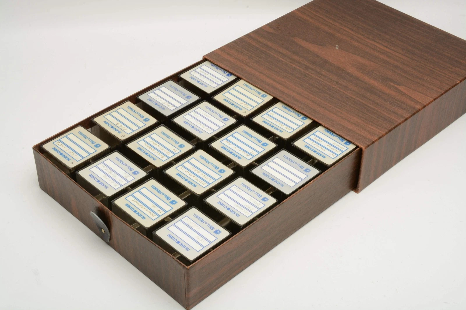Bell Howell Slide Cube Cartridge Library, 16 cubes 576-704 Slides in case