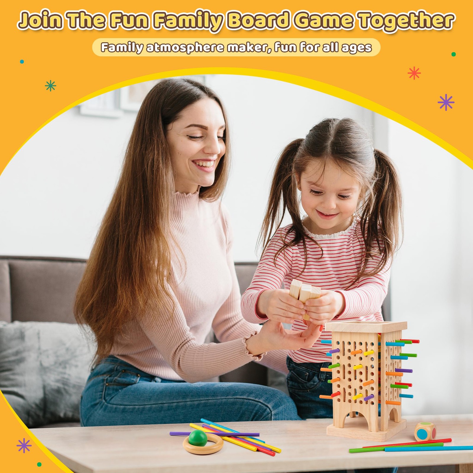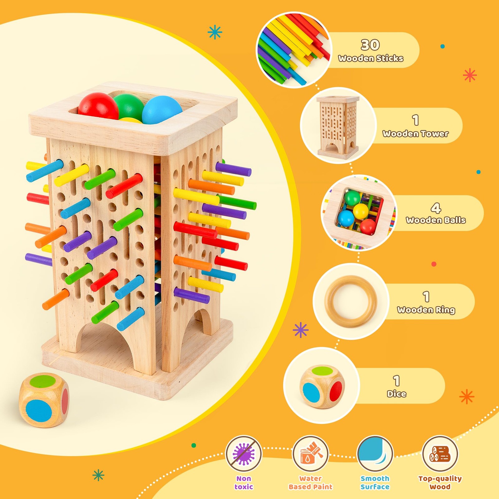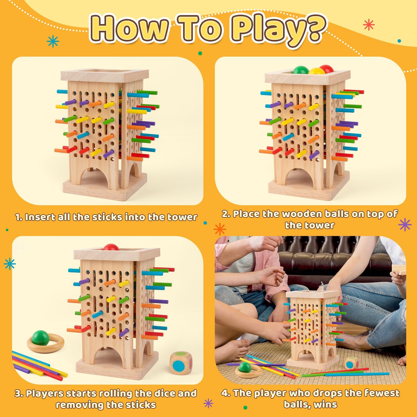 Included Components: 30 Sticks + 1 Wooden Tower + 1 Dice + 4 Ball