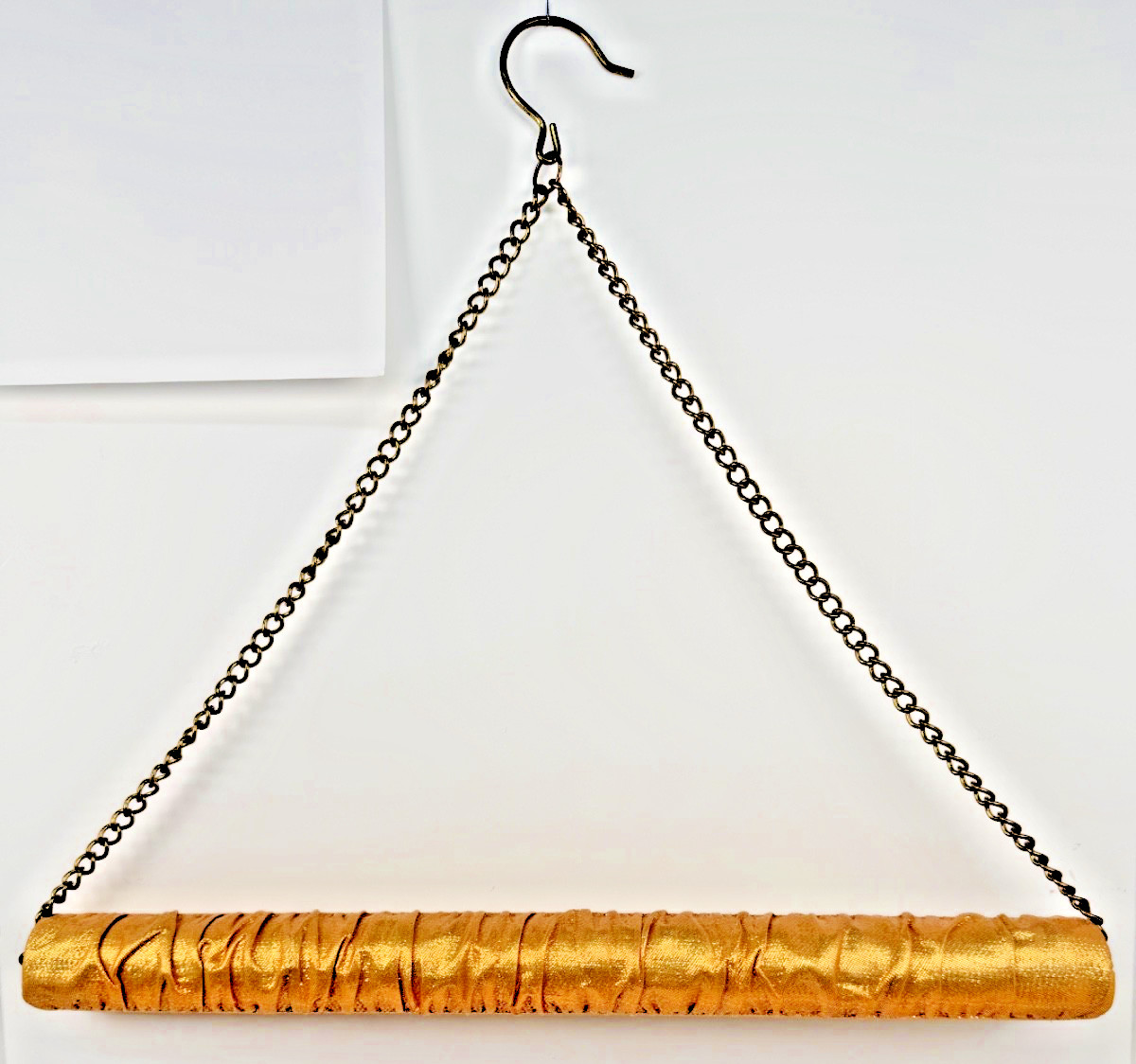 как выглядит Vtg Sparkly Gold Stole Hanger Chain Brass Hook Garment Scarf Quilt Hanger w Box фото