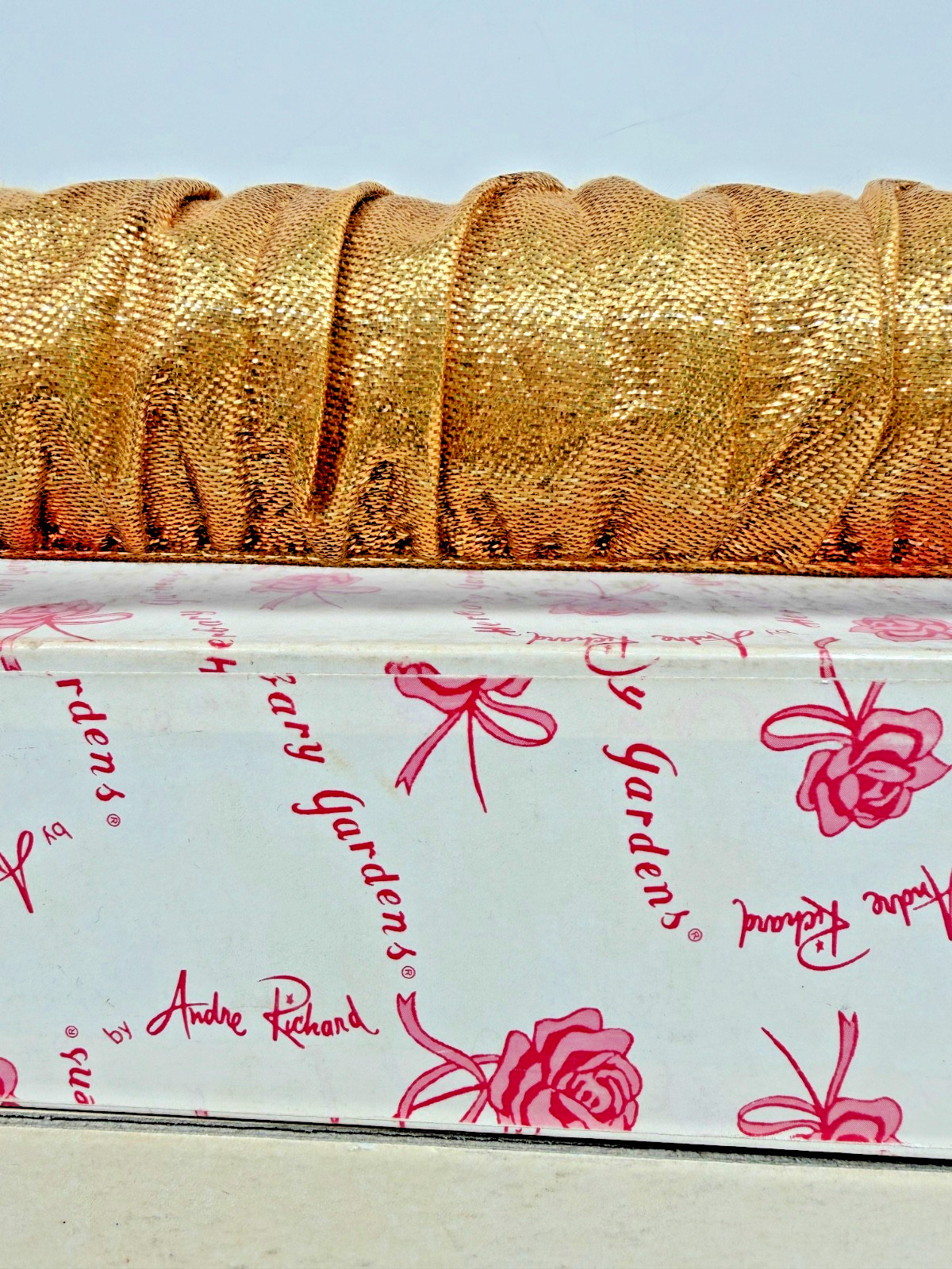 Vtg Sparkly Gold Stole Hanger Chain Brass Hook Garment Scarf Quilt Hanger w Box
