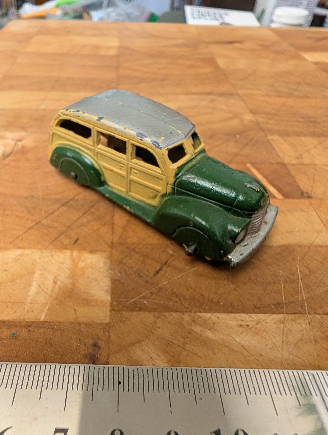 как выглядит Vintage - Tootsie Toy 3 Inch Woody Station Wagon from the 1940