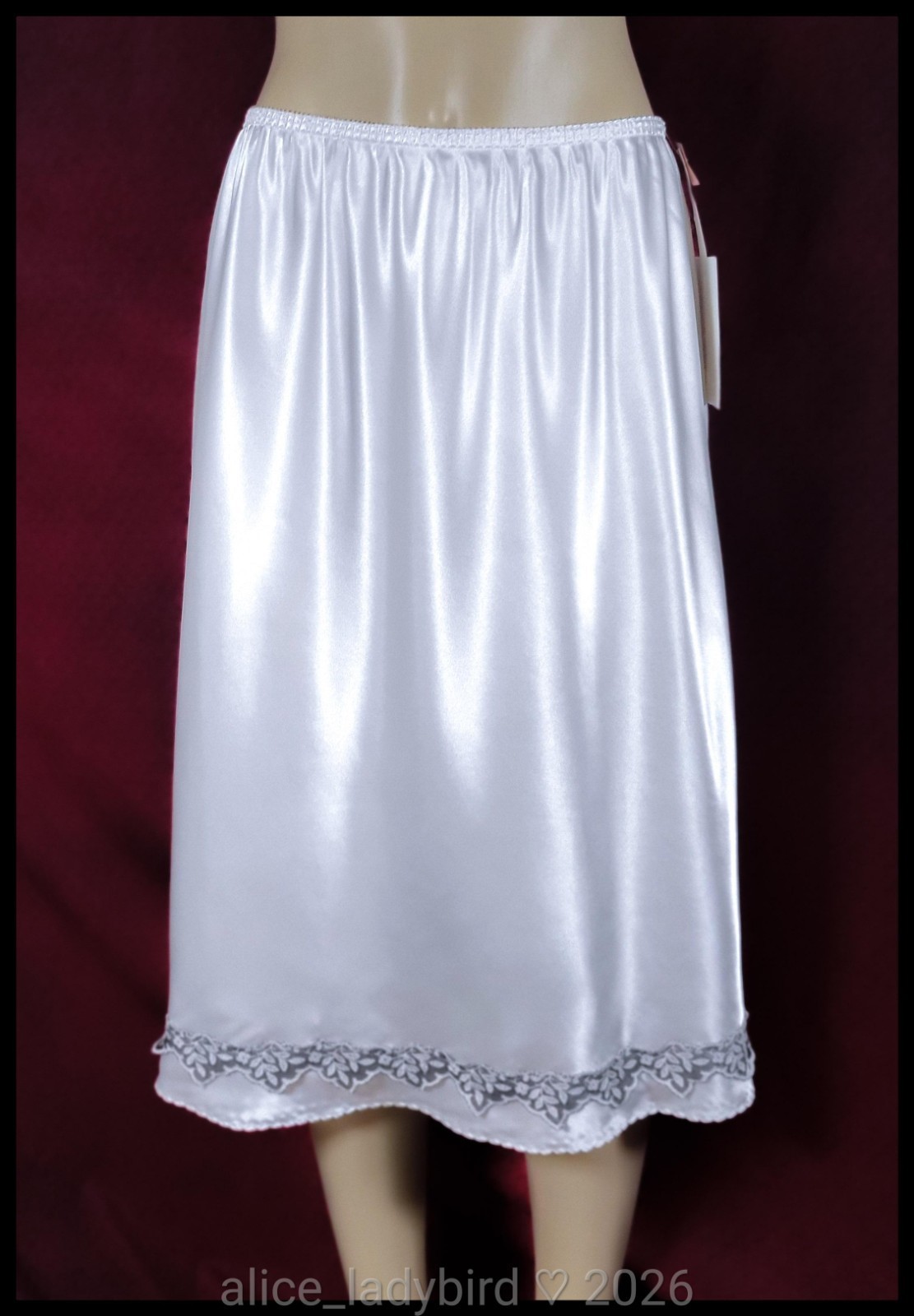 NWT Vintage SHINY Liquid SATIN Half SLIP Skirt SLIPPERY Floral Lace XL/XXL