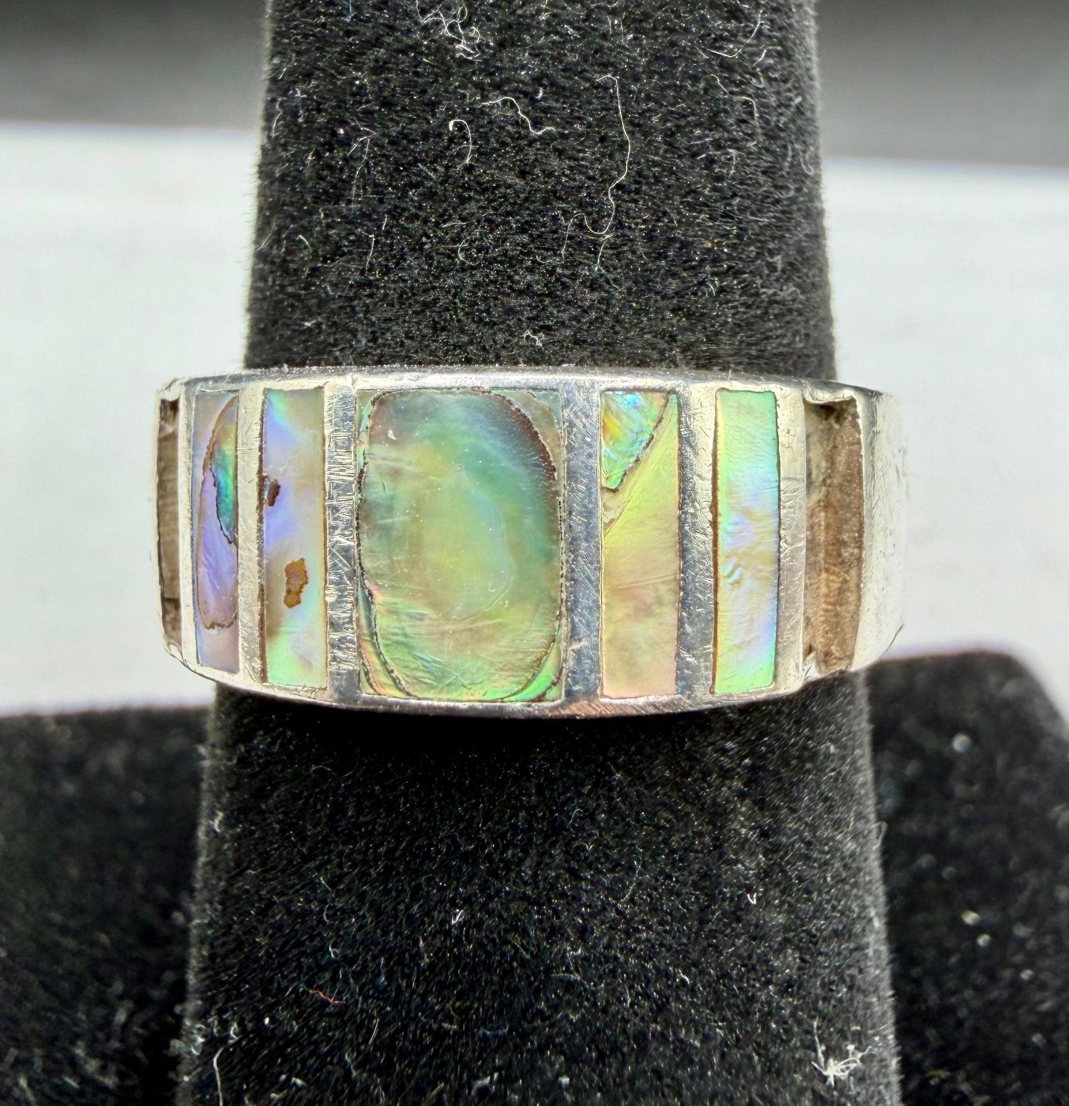 Vintage NF Thailand 925 Sterling Silver Abalone Ring As-Is Sz 7.5 - 5g