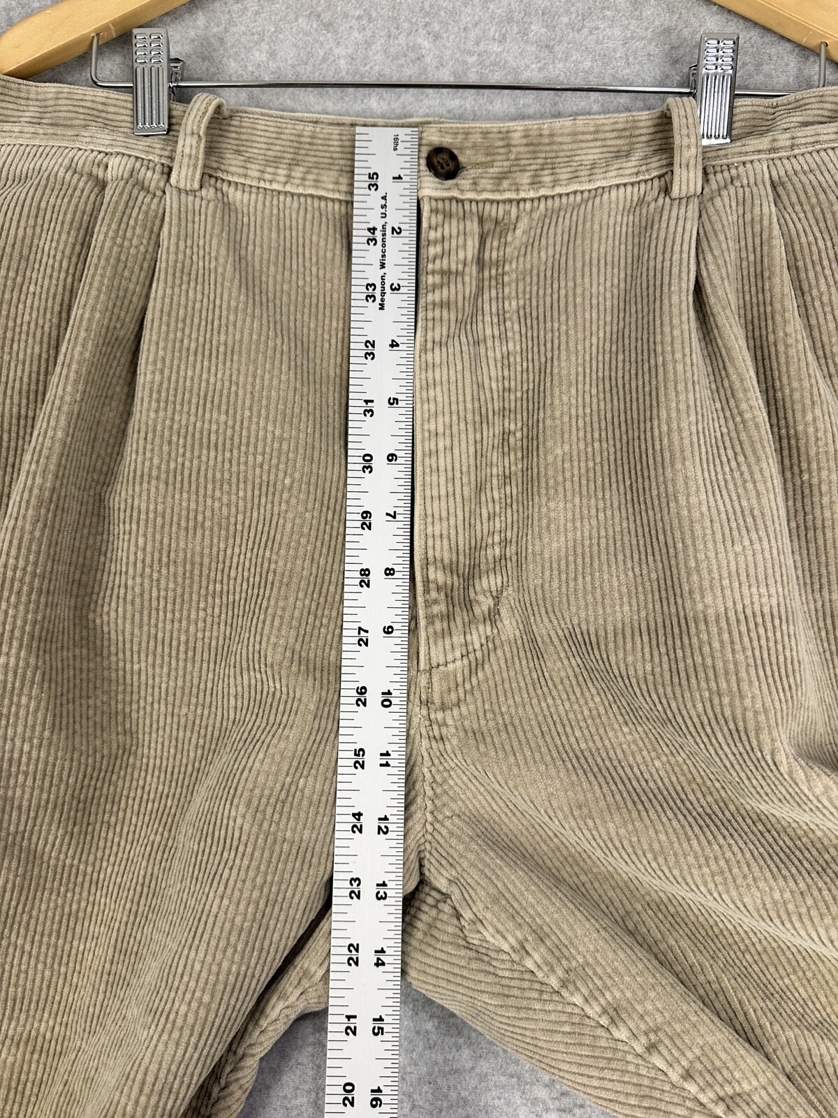 Vintage Woolrich Corduroy Pants Mens 40x34 Khaki Pleated 100 Flap Rear Pockets