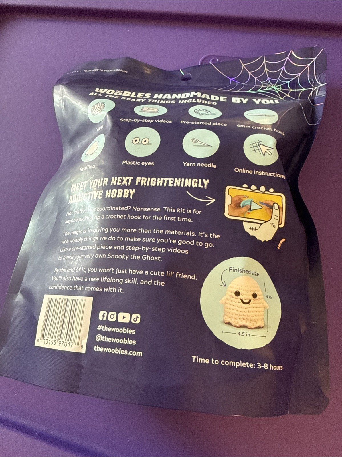 New The Woobles Crochet Kit - Snooky The Ghost Glow in Dark Yarn Special Hook
