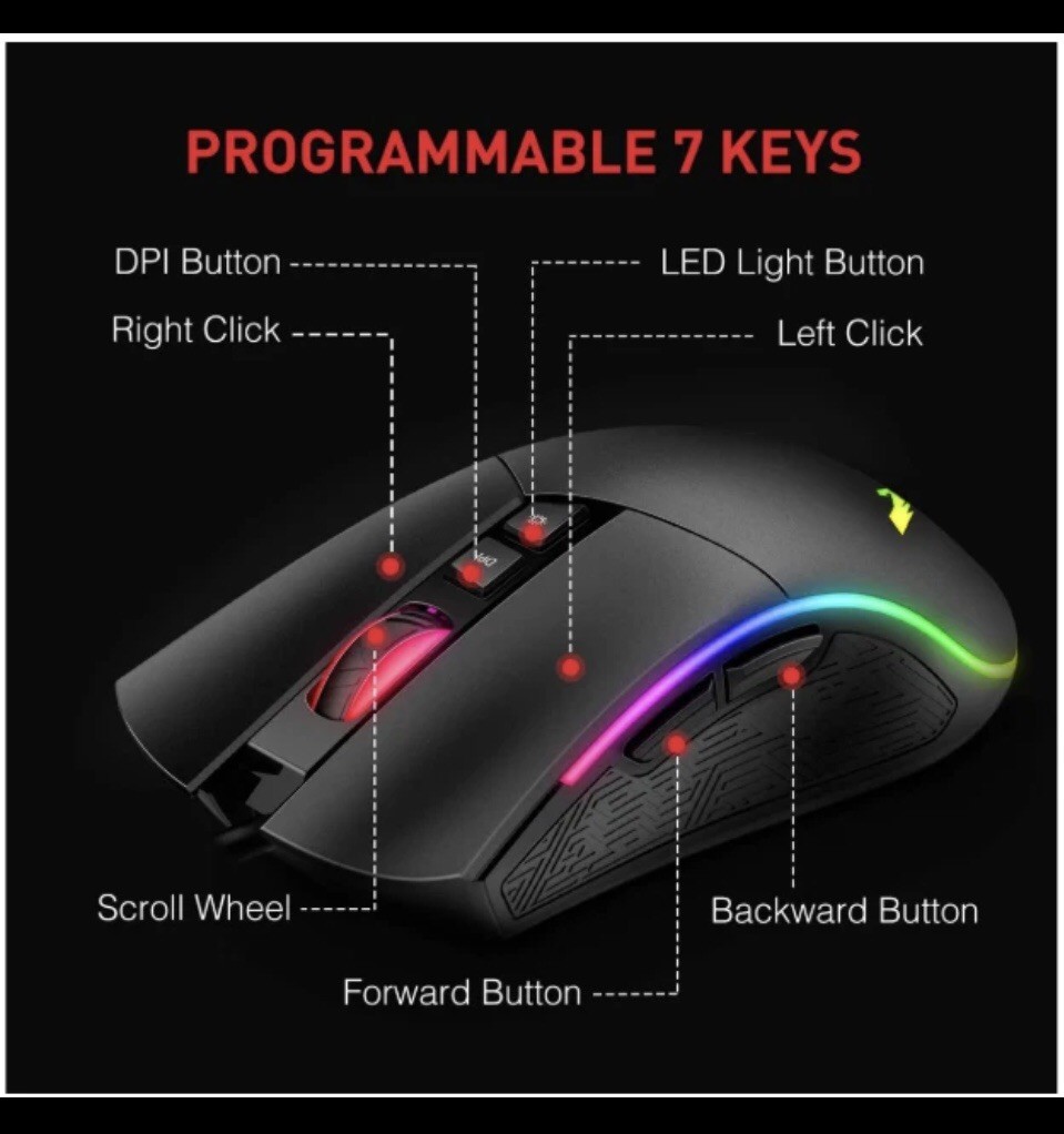 Havit RGB HV-MS733 Wired Programmable Black Gaming Mouse 5V Ergonomic LED Colors