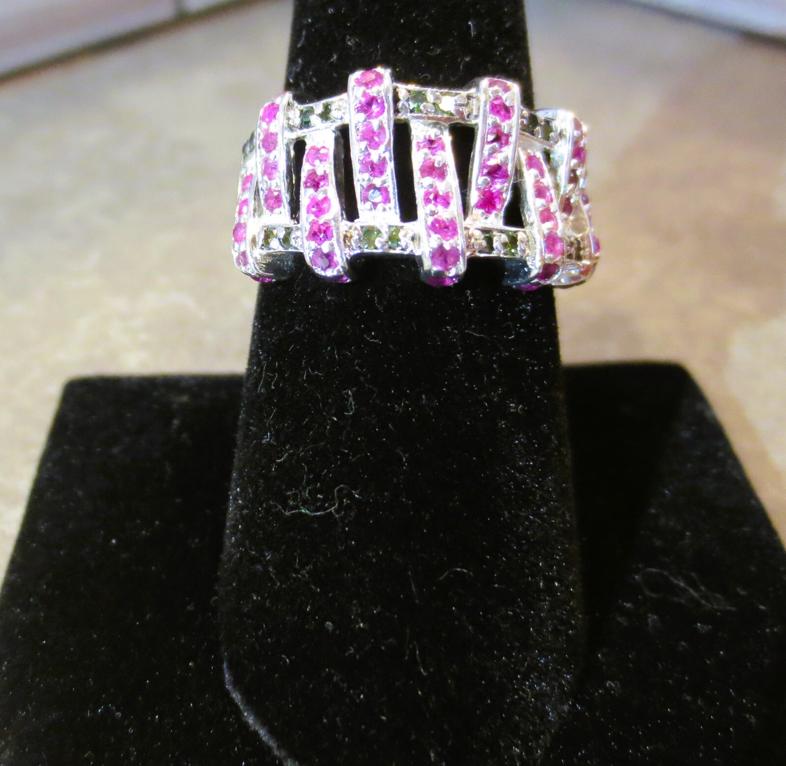 .925 Sterling Silver 5.3g Womens RING Size 8 Pink Green Quartz Thailand Beauty