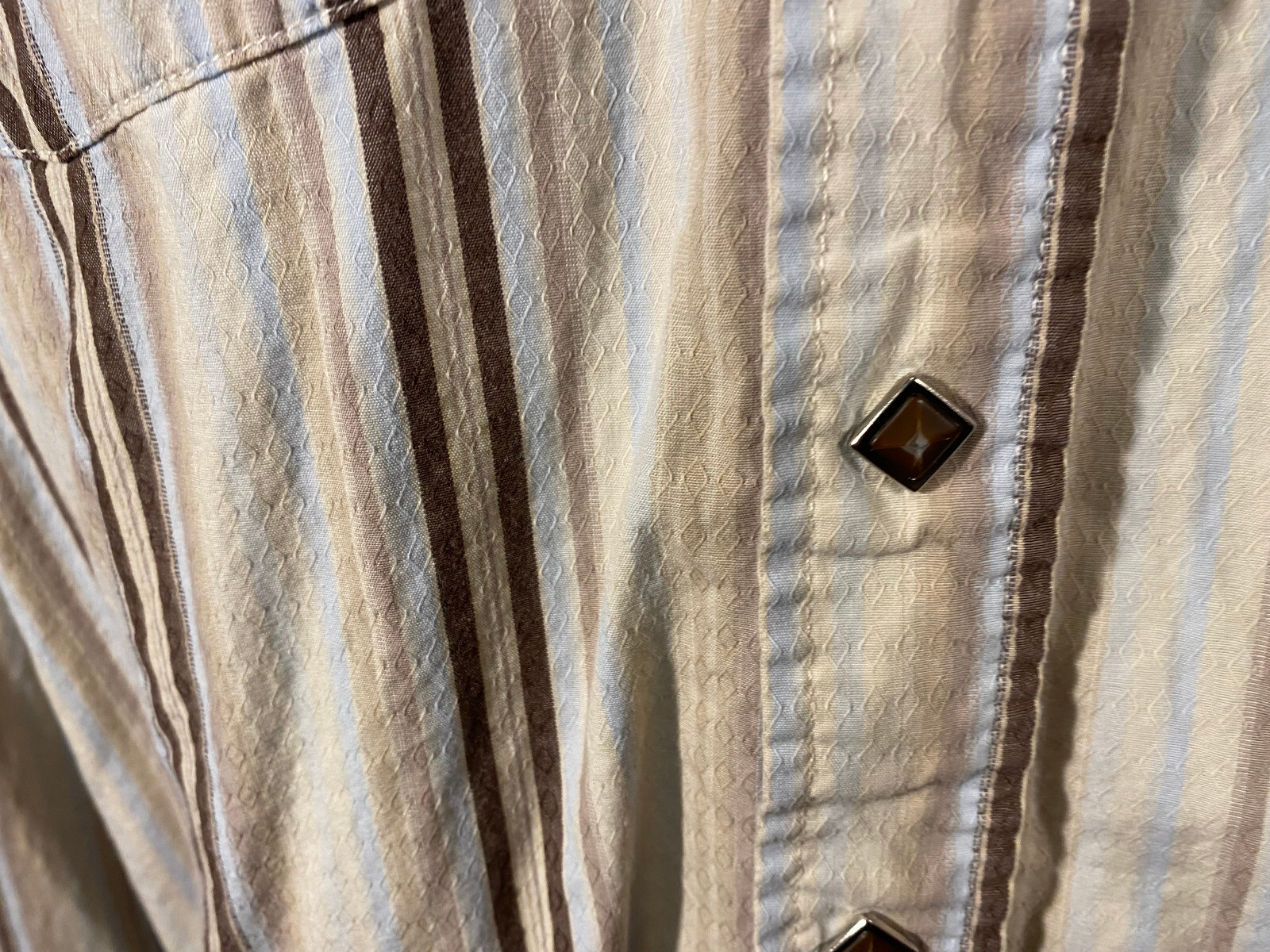 как выглядит Mens Brooks Dunn Western Shirt XL Brown Striped L/S Cot Diamond Snaps Rodeo фото