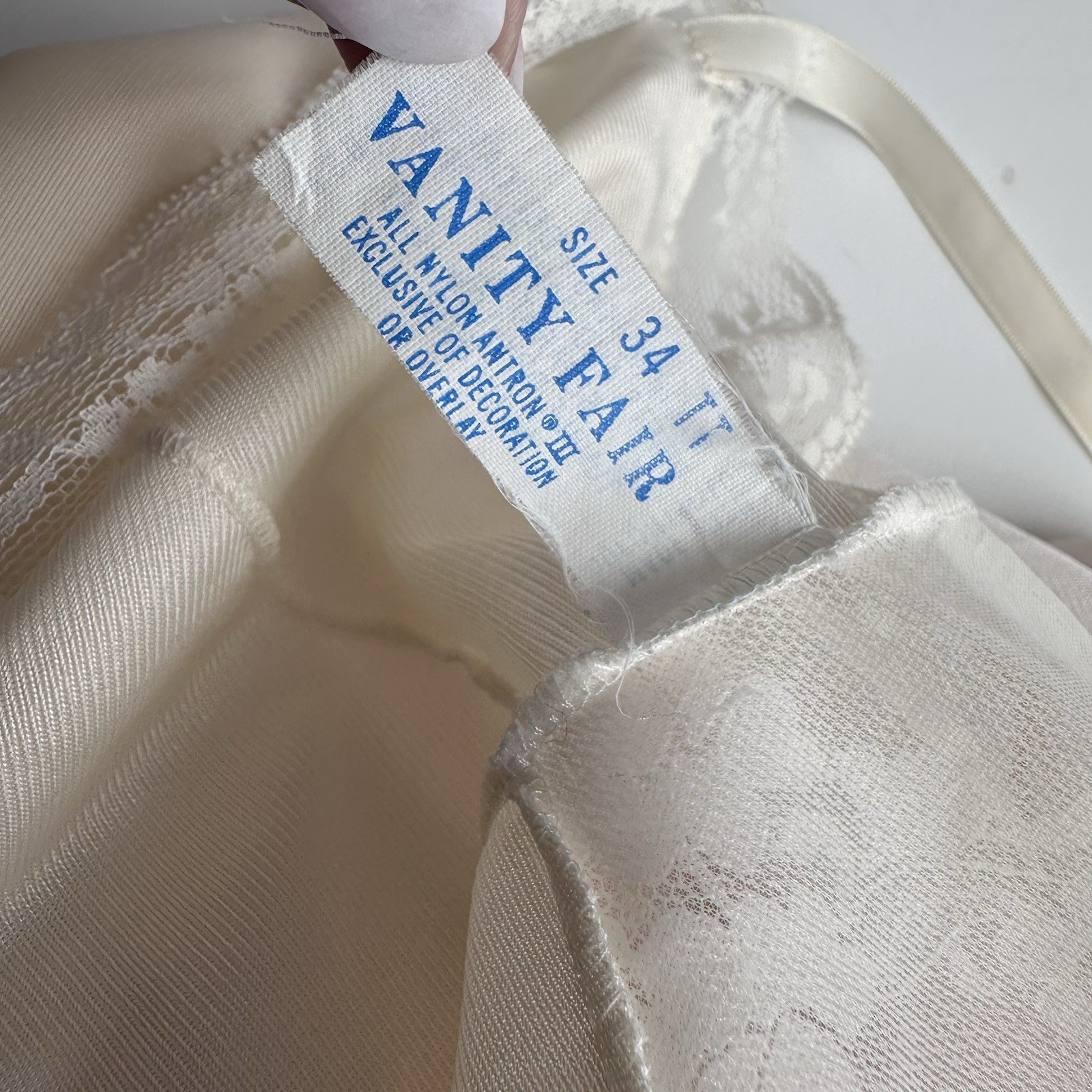 как выглядит Vintage Vanity Fair Full Slip Lace Antron III Nylon 70s Cream Womens 34 Medium фото