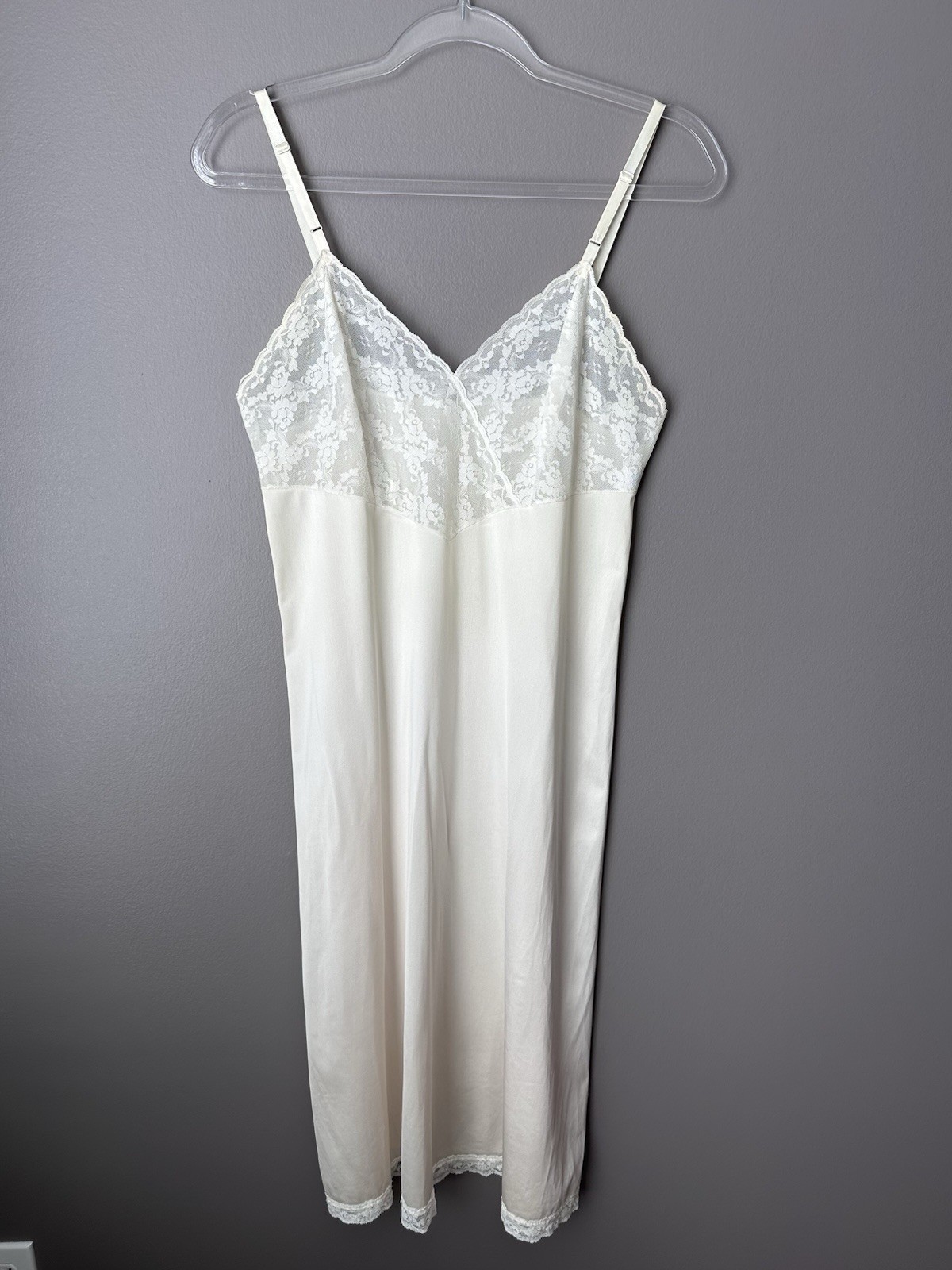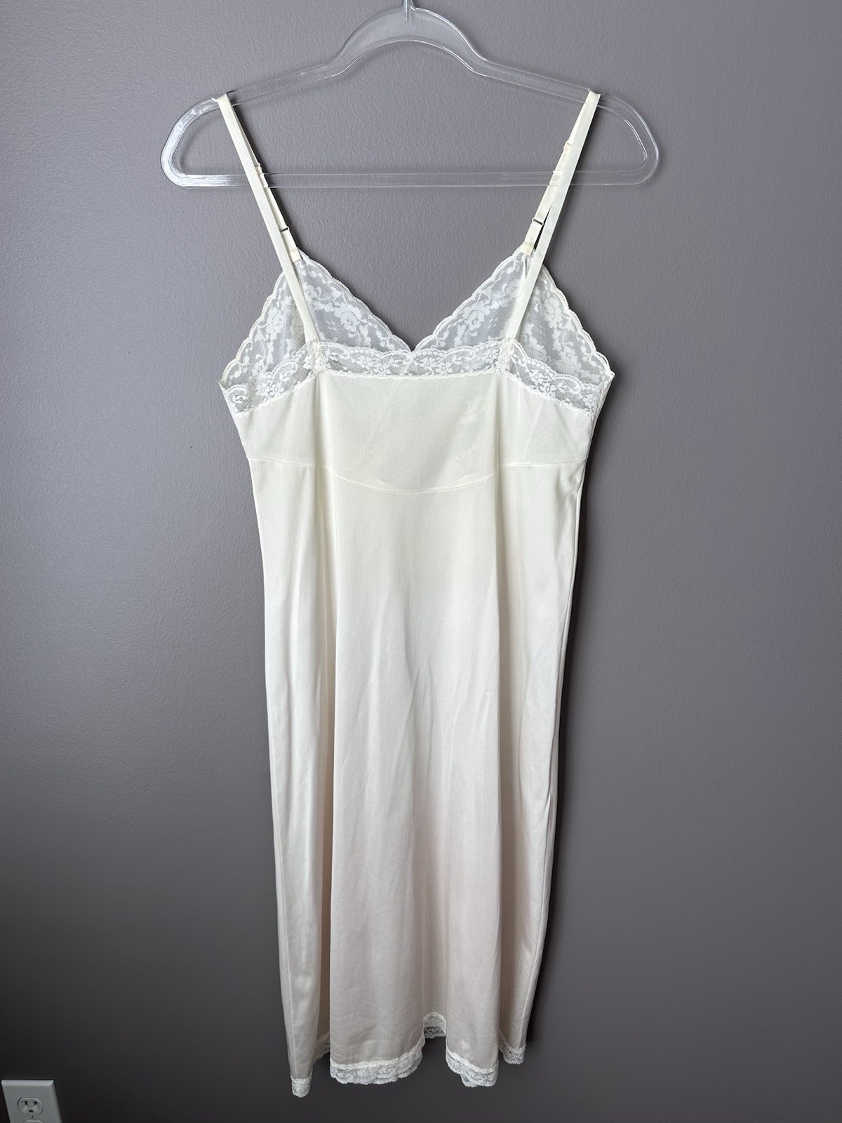 Vintage Vanity Fair Full Slip Lace Antron III Nylon 70s Cream Womens 34 Medium