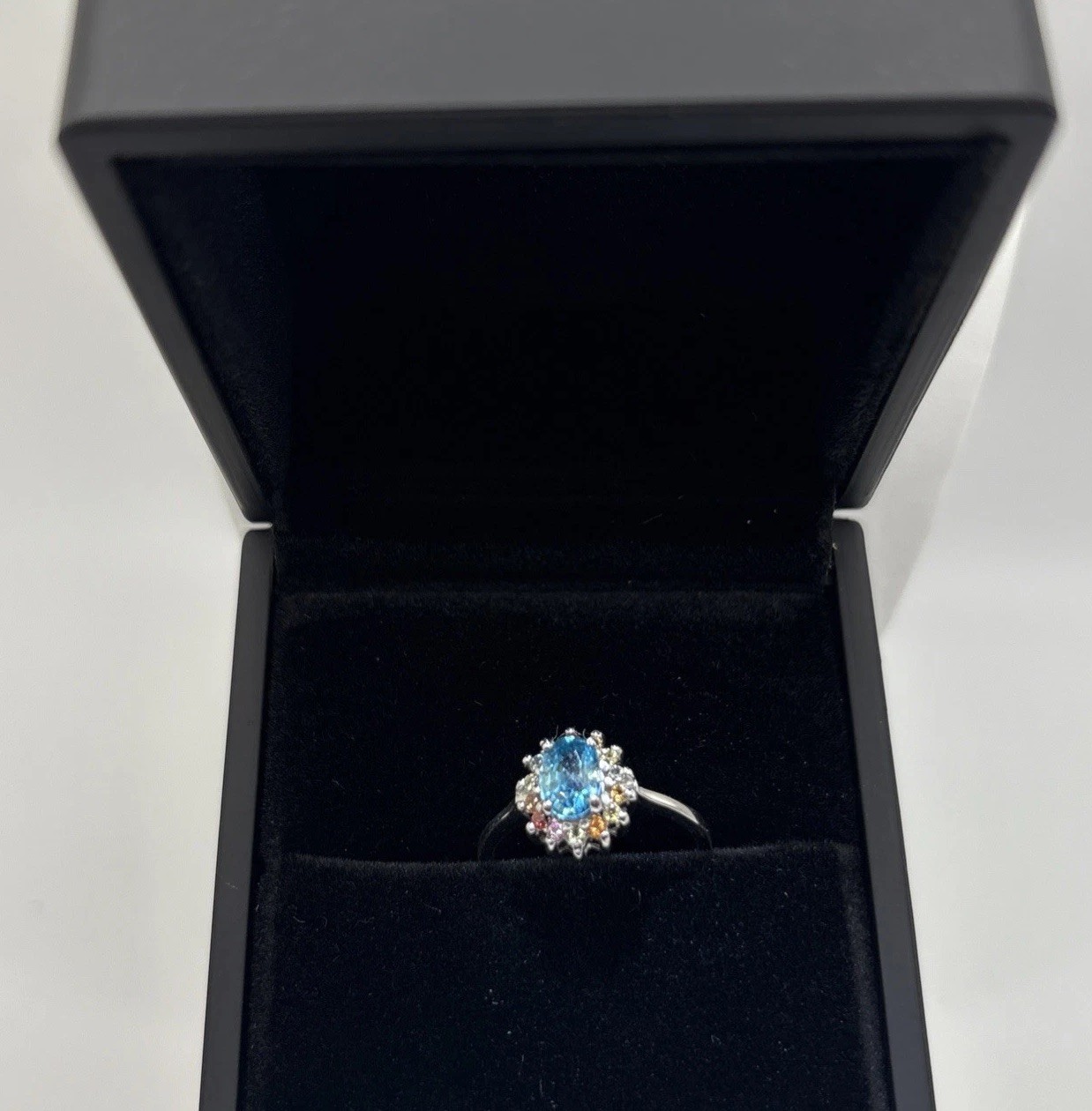 как выглядит Blue Zircon Multi-Color Sapphire Halo Ring Sterling Silver Size 7 1.50 ctw фото
