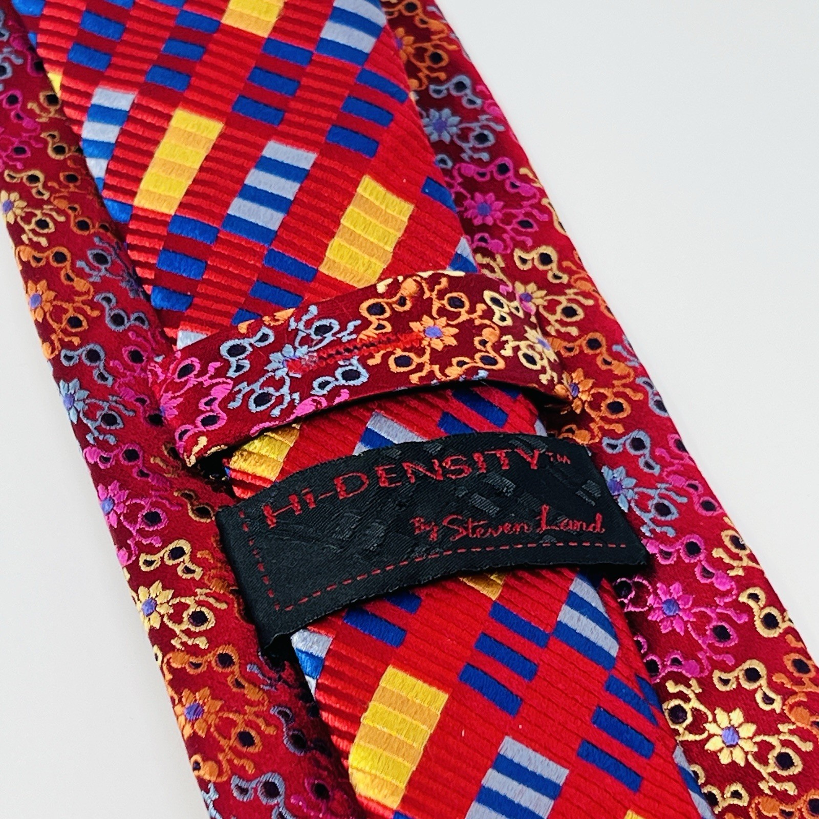 Red Floral Geometric Abstract Hi-Density Steven Land Tie